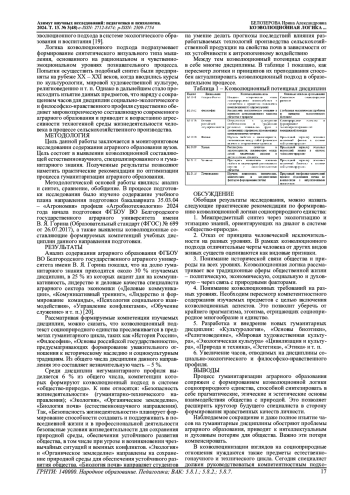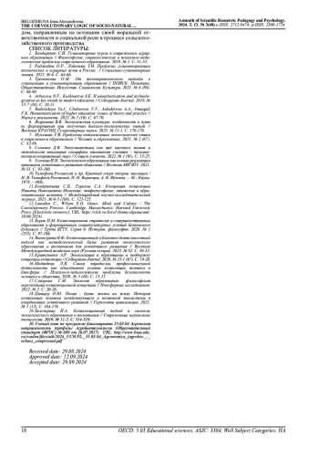 В настоящее время, как отмечается многими исследователями (С. И. Бондаренко [1], О. Р. Раджабов, З. Н. Лобачева [2], О. М. Троненкова [3], N. V. Arbuzova, S. E. Kushnareva [4], Ya. I. Radzitskaya [5]) все актуальнее становится проблема перехода от технократизации к гуманитаризации высшего образования в целом, аграрного, в частности.