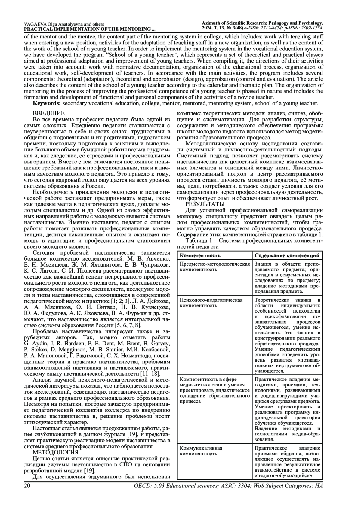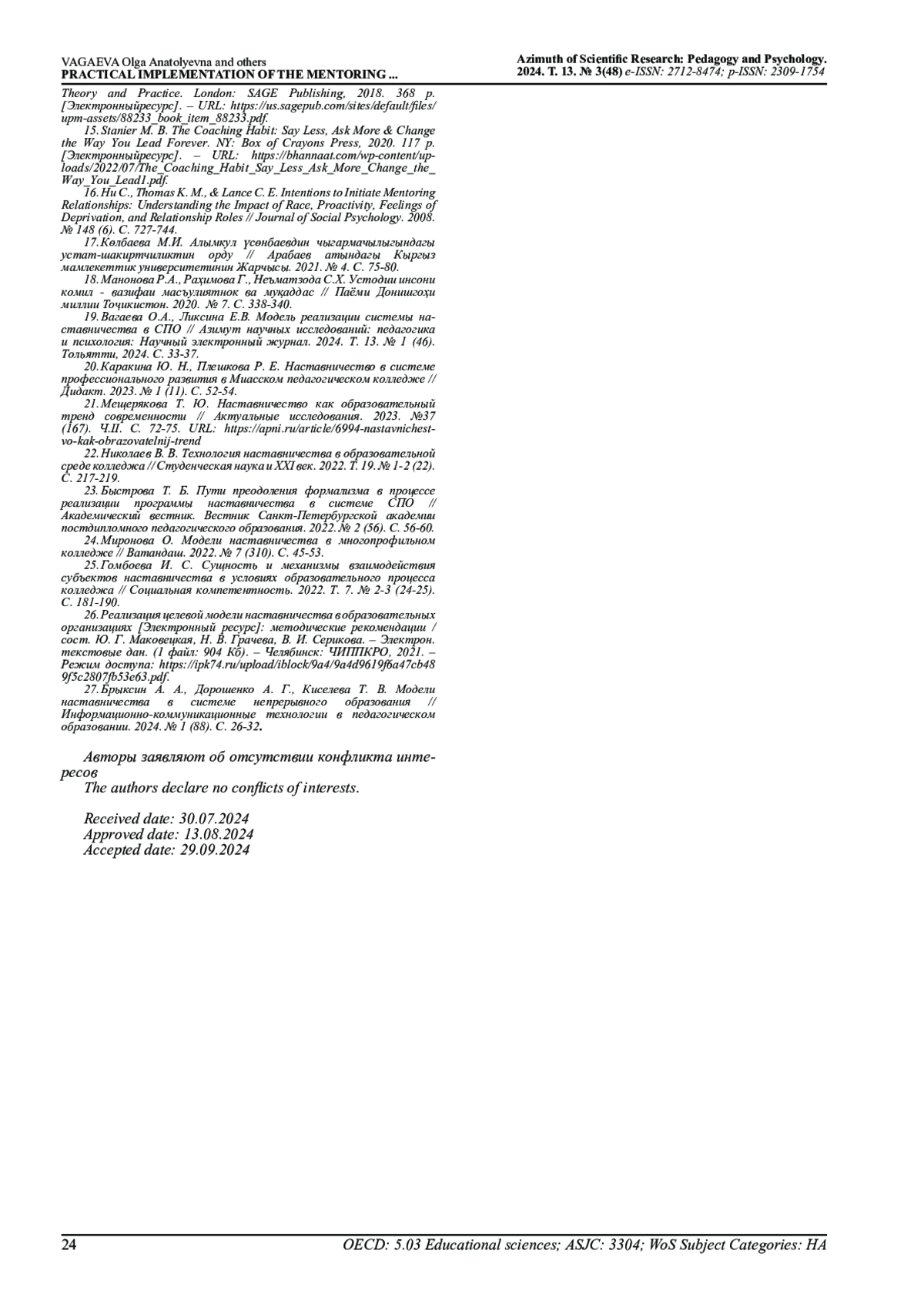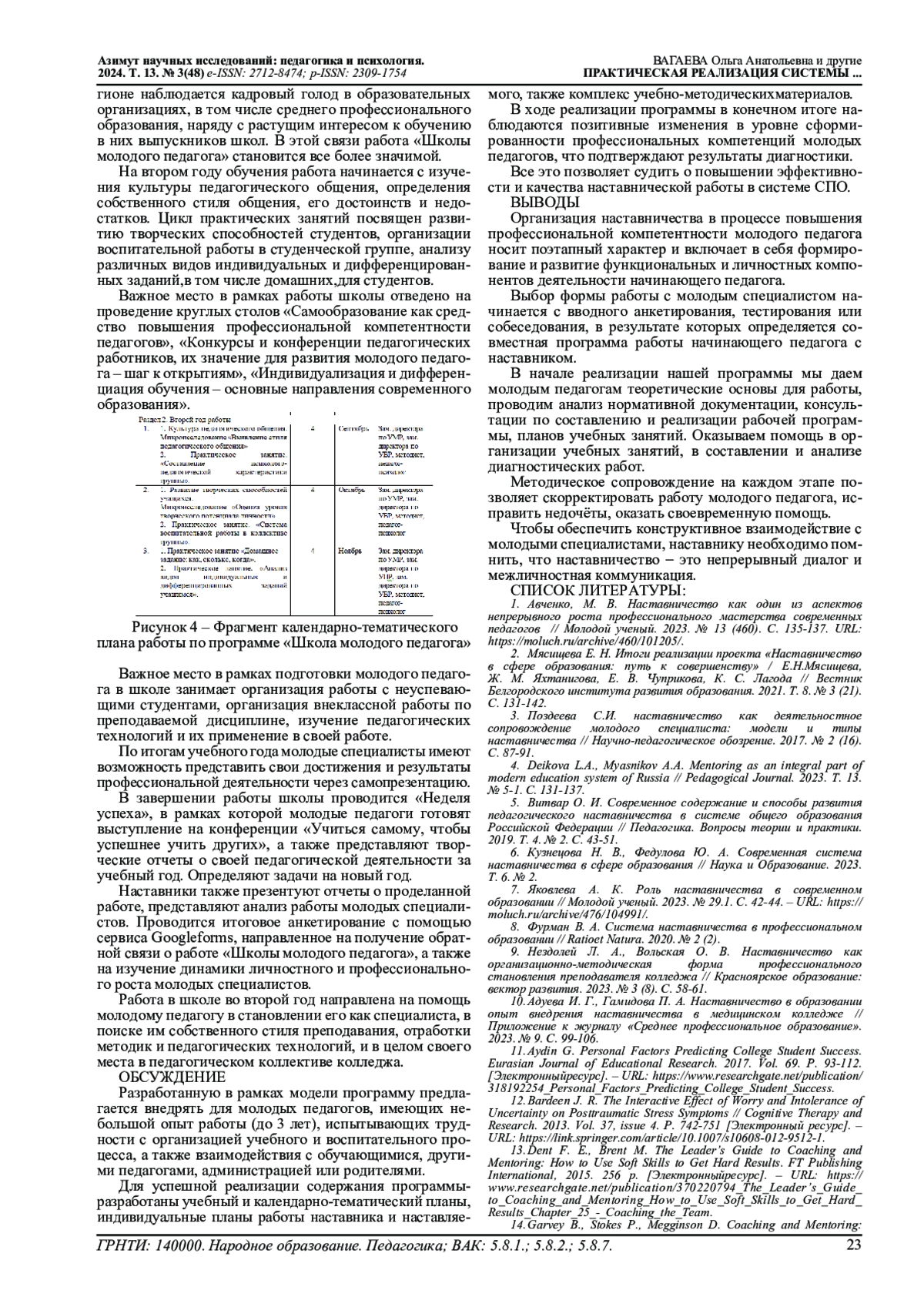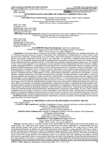 19. Вагаева О.А., Ликсина Е.В. Модель реализации системы наставничества в СПО // Азимут научных исследований: педагогика и психология: Научный электронный журнал. 2024. Т. 13. № 1 (46). Тольятти, 2024. С. 33-37.