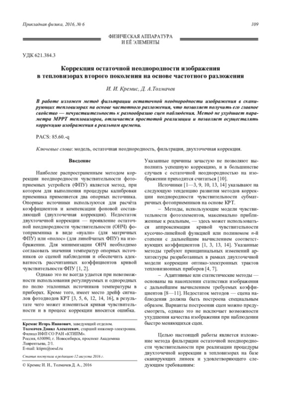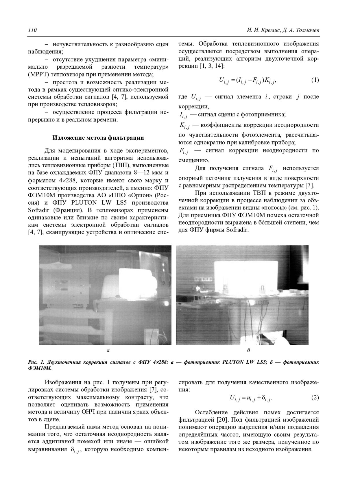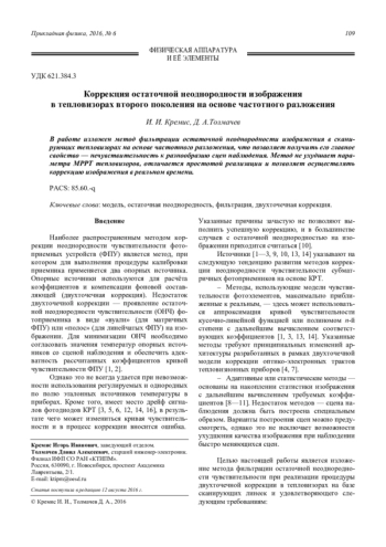 Кремис И. И., Толмачев Д. А. Коррекция остаточной неоднородности изображения в тепловизорах второго поколения на основе частотного разложения 109