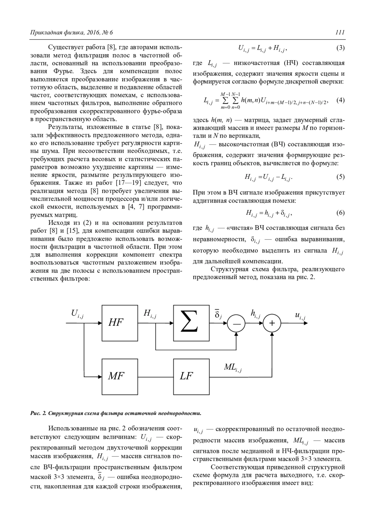 I. I. Kremis and D. A. Tolmachev Filtration of the residual inhomogeneity in the image of the second generation imagers based on frequency decomposition 109