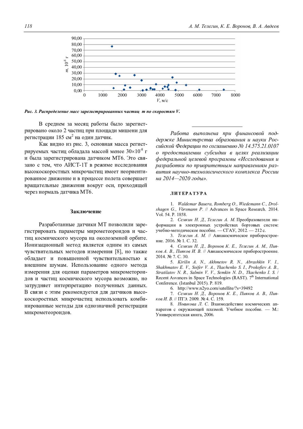 Телегин А. М., Воронов К. Е., Авдеев В. А. Исследование микрометеороидов и частиц космического мусора ионизационным детектором на малом космическом аппарате АИСТ-1Т 116