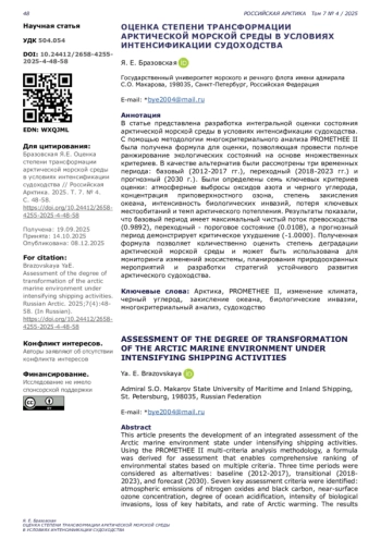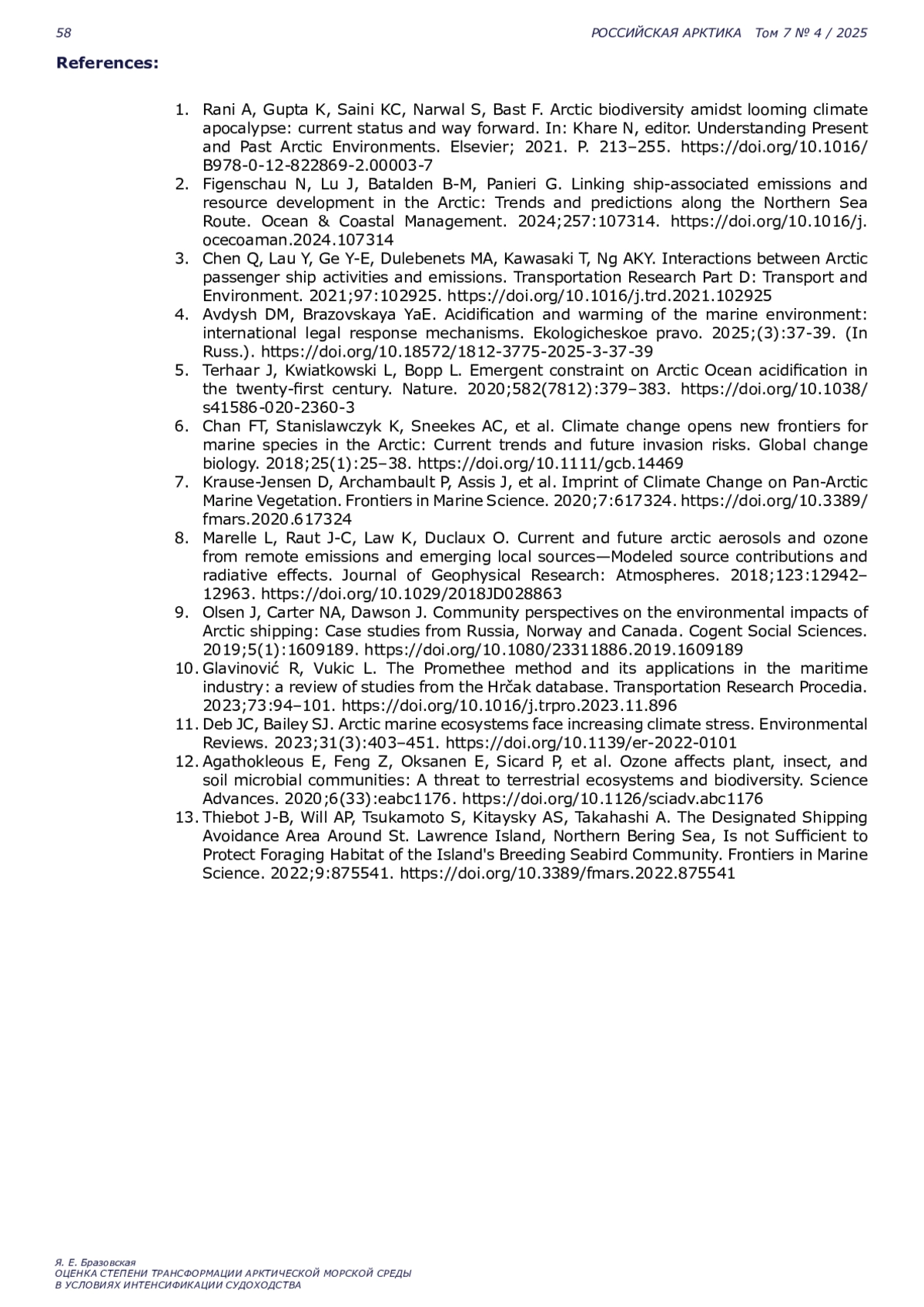 2. Figenschau N., Lu J., Batalden B.-M., Panieri G. Linking ship-associated emissions and resource development in the Arctic: Trends and predictions along the Northern Sea Route // Ocean & Coastal Management. 2024. Vol. 257. Article. 107314. DOI: 10.1016/j.ocecoaman.2024.107314
