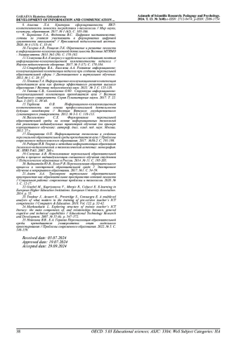 14. Титова С.В., Самойленко О.Ю. Структура информационно-коммуникационной компетенции преподавателя вуза // Вестник Тамбовского университета. Серия Гуманитарные науки. 2017. Т. 22. Вып. 3 (167). С. 39-48. EDN: YPRXKZ