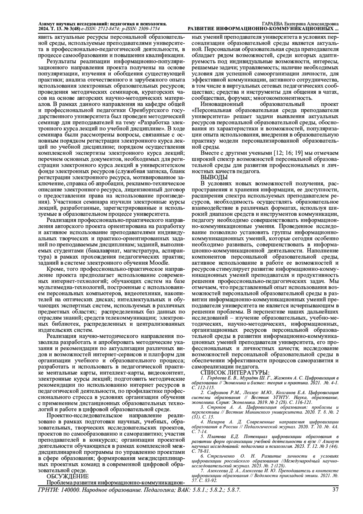7. Алексеева Д. А., Алексеева И. Ю. Преподаватель в контексте цифровизации образования // Ведомости прикладной этики. 2021. №. 57. С. 83-92. EDN: LFIJME