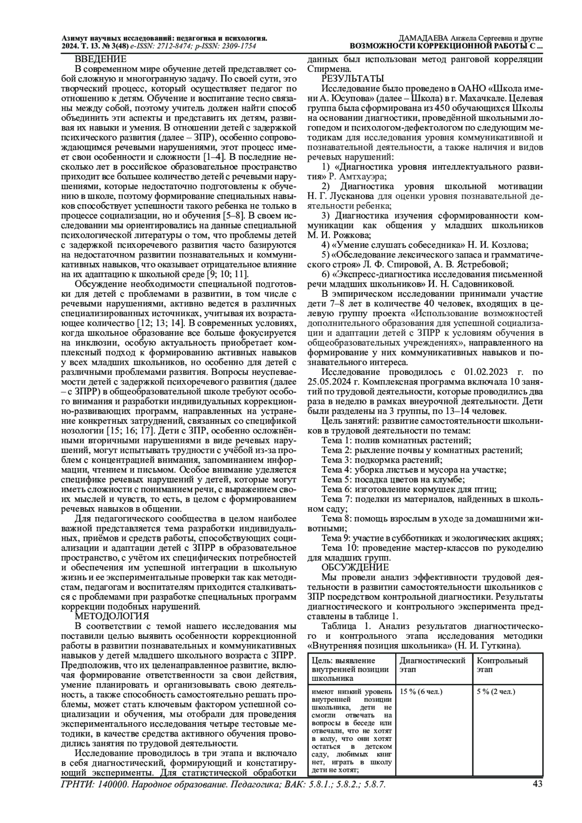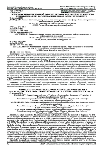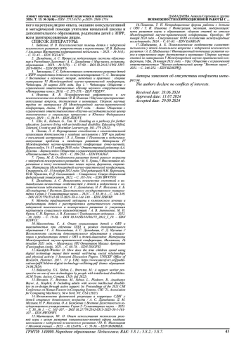 1. Бабкина, Н. В. Психологическая помощь детям с задержкой психического развития: ретроспектива и перспективы / Н. В. Бабкина // Альманах Института коррекционной педагогики. - 2023. - № 54(1). - С. 32-43. EDN: TGOAJU