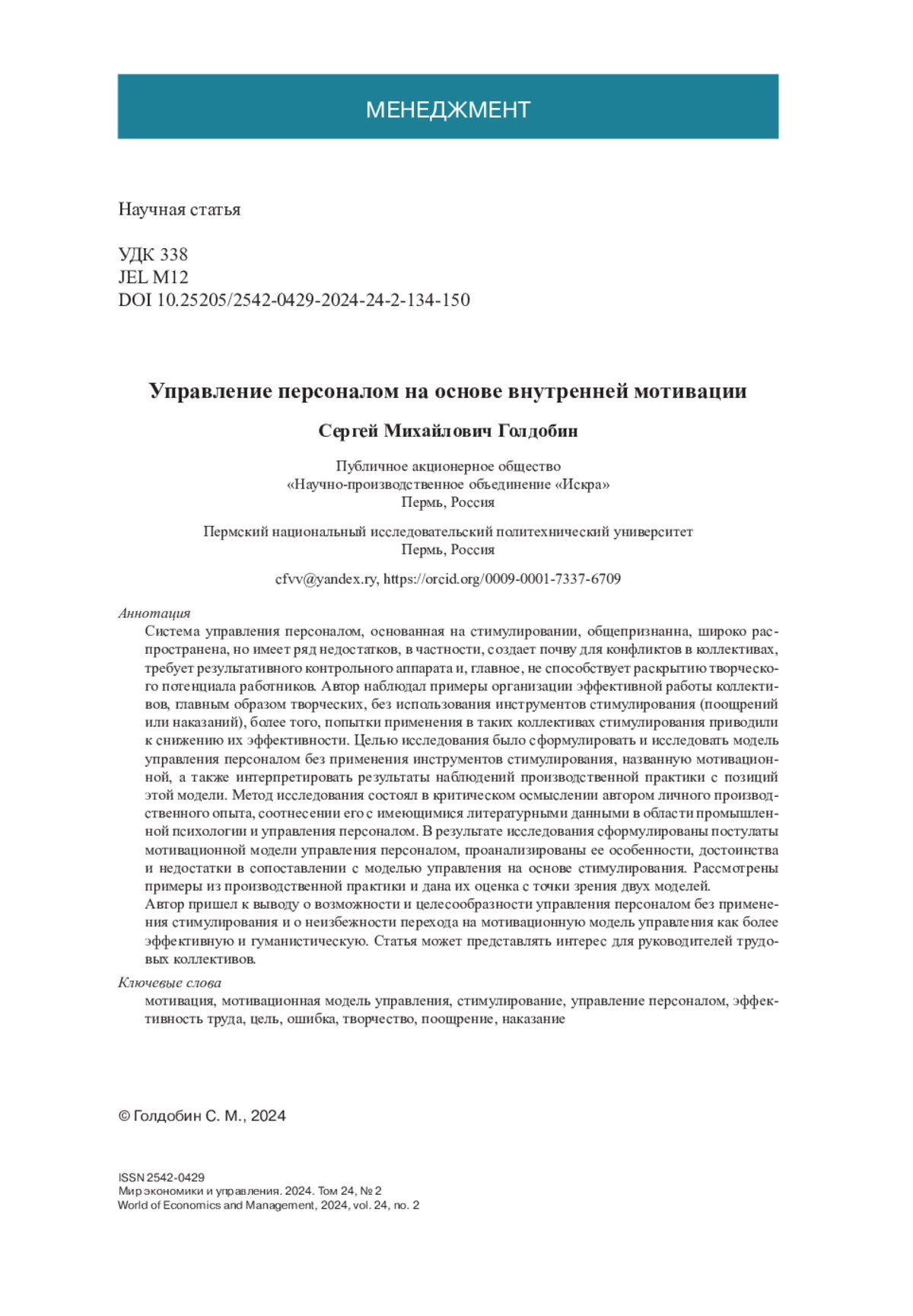 7. Голдобин С. М. Качество труда: мотивация или стимулирование? // Методы менеджмента качества. 2022. № 8. С. 32-37.