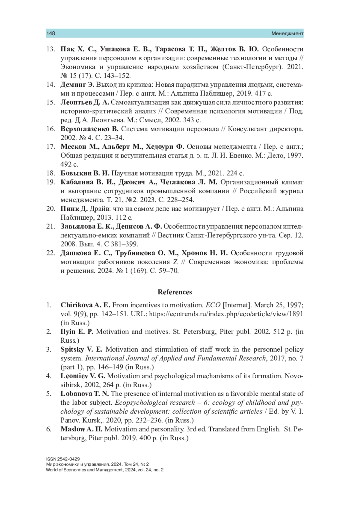 22. Дашкова Е. С., Трубникова О. М., Хромов Н. И. Особенности трудовой мотивации работников поколения Z // Современная экономика: проблемы и решения. 2024. № 1 (169). С. 59-70.