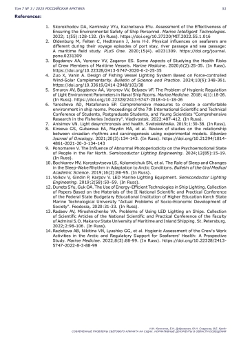 13. Радаев А.В., Мирошниченко В.А. Проблемы применения светодиодного освещения на судах // Сборник научных статей национальной научно-практической конференции профессорско-преподавательского состава ФГБОУ ВО “ГУМРФ имени адмирала С.О. Макарова”, Т. 2. СПб, 2022. С. 98-106.