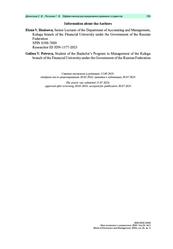 5. Кондрашова Н. Г., Авраменко М. А. Управление временем как эффективное средство менеджмента // Экономика и бизнес: теория и практика. 2020. № 11-2 (69). С. 51-54.