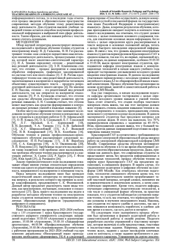 Обучение чтению на иностранном языке можно считать одной из основных задач системы образования в современных реалиях. При этом педагоги высшей школы не могут не использовать все преимущества, которые им в состоянии представить технический прогресс. Это разнообразные информационные ресурсы, компьютеры, современные гаджеты и сеть интернета. Чтение выполняет исключительную роль, поскольку именно оно позволяет будущему специалисту окунуться в различные источники информации и тем самым удовлетворить свои познавательные потребности, а также осуществить коммуникативно-общественную деятельность. Чтение реализует всевозможные функции. Чтение служит для практического освоения иностранным языком, является средством изучения языка и культуры, а также является средством саморазвития. Авторы статьи предлагают применять смешанный формат при обучении чтению на иностранном языке студентов следующих направлений подготовки 35.03.03 Агрохимия и агропочвоведение, 35.03.04 Агрономия, 35.03.10 Ландшафтная архитектура, 44.03.04 Профессиональное обучение (Агрономия), 35.03.06 Агроинженерия, которое состояло из контактной работы в аудитории и самостоятельного обучения на платформе “Moodle”. Эксперимент включал входное тестирование знаний и умений чтения на иностранном языке, организацию аудиторной и самостоятельной работы по обучению чтению и итоговое тестирование. В результате проведенной работы увеличилось количество студентов, которое справилось с итоговыми заданиями.