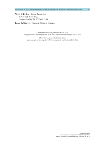 1. Baranov А. О., Kvaktun М. I. Forecasting Accelerated Renovation of Fixed Capital Assets in Russia Using a Dynamic Input-Output Model // Studies on Russian Economic Development. 2020. Vol. 31 (2). P. 162-170.