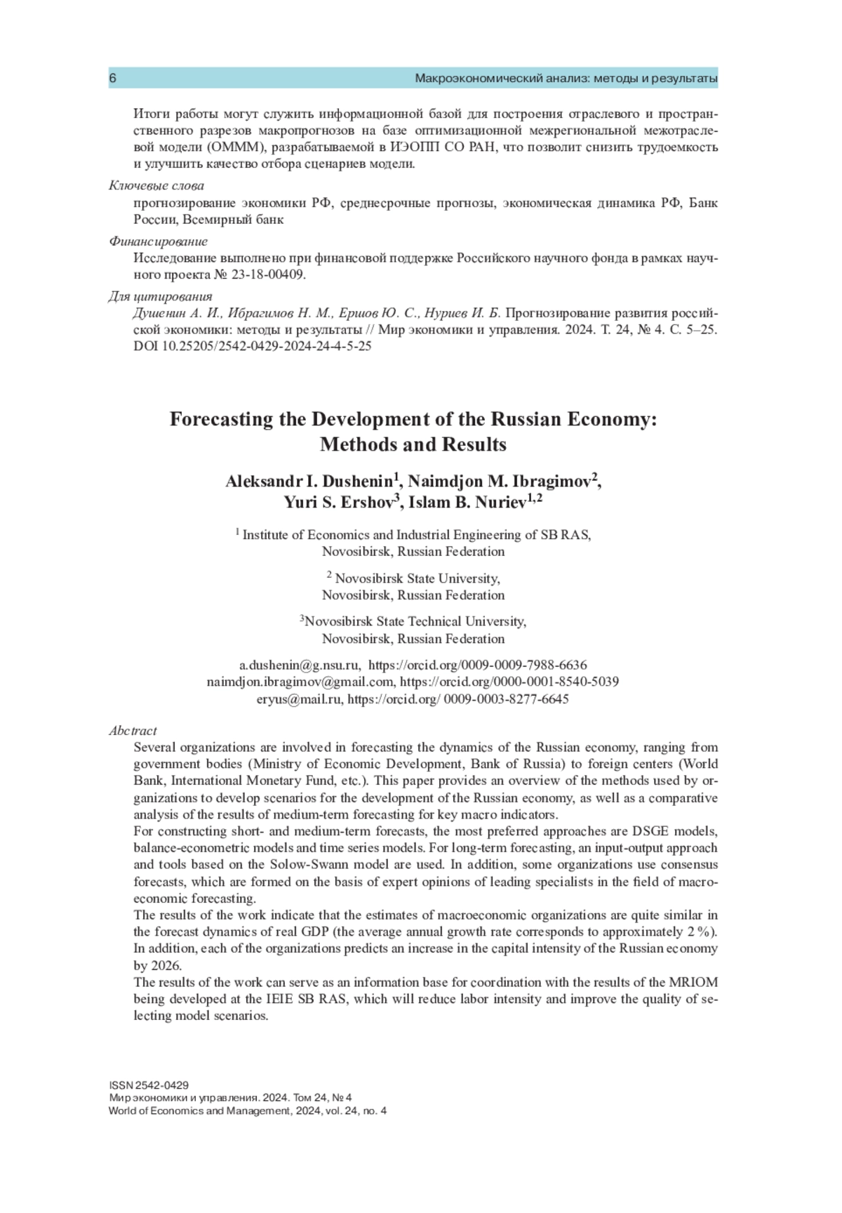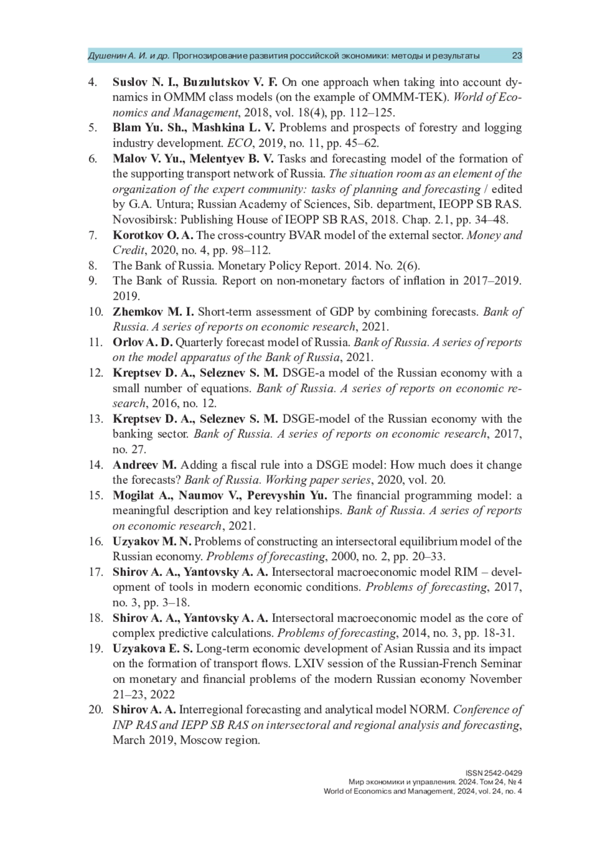 17. Широв А. А., Янтовский А. А. Межотраслевая макроэкономическая модель RIM - развитие инструментария в современных экономических условиях // Проблемы прогнозирования. 2017. № 3. С. 3-18.