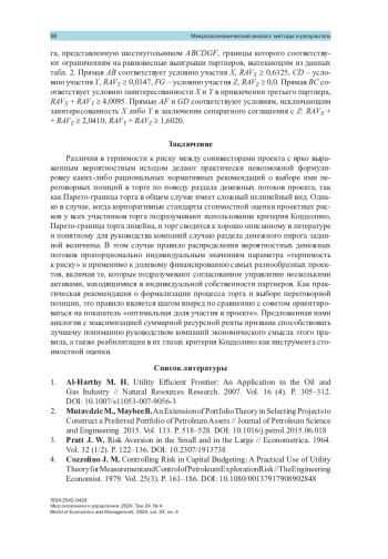 1. Al-Harthy М. Н. Utility Efficient Frontier: An Application in the Oil and Gas Industry // Natural Resources Research. 2007. Vol. 16 (4). P. 305-312. https://doi.org/10.1007/sll053-007-9056-3