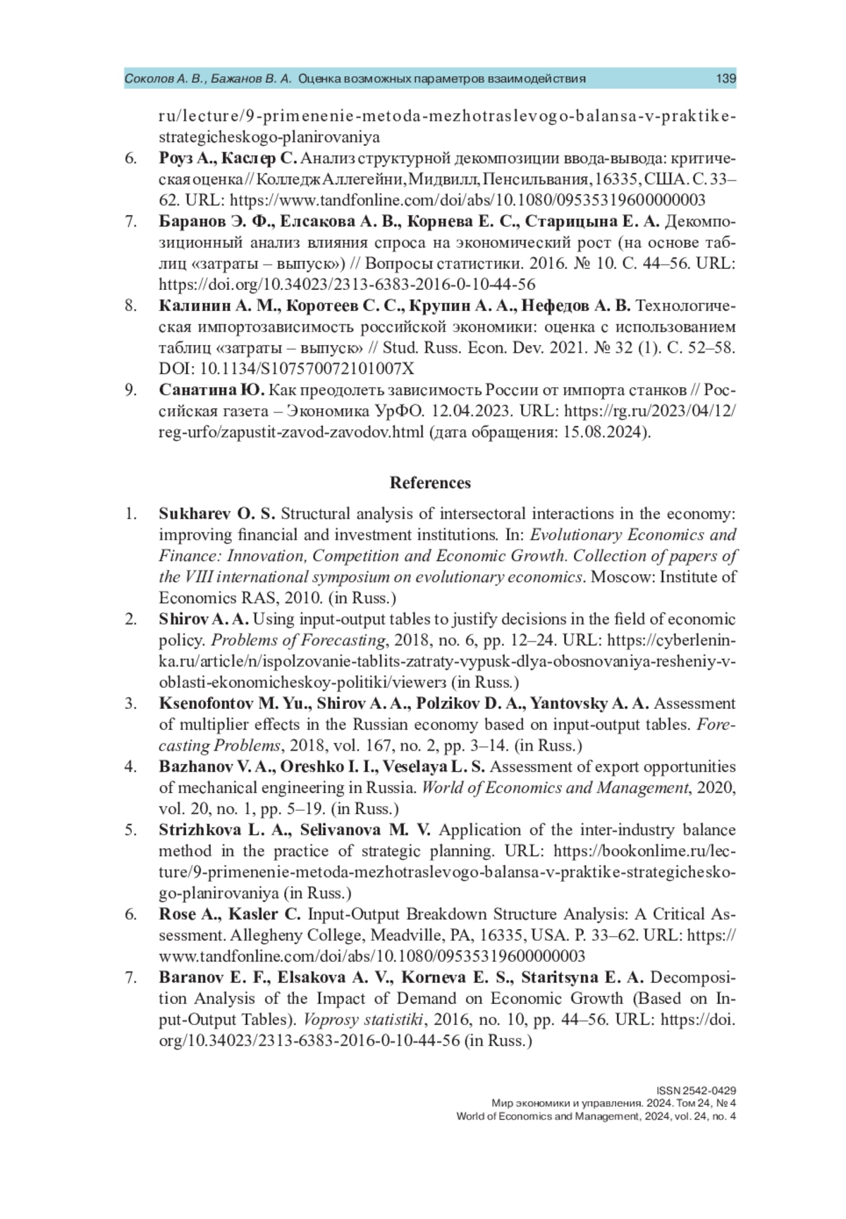 6. Роуз А., Каслер С. Анализ структурной декомпозиции ввода-вывода: критическая оценка // Колледж Аллегейни, Мидвилл, Пенсильвания, 16335, США. С. 3362. URL: https://www.tandfonline.com/doi/abs/10.1080/09535319600000003