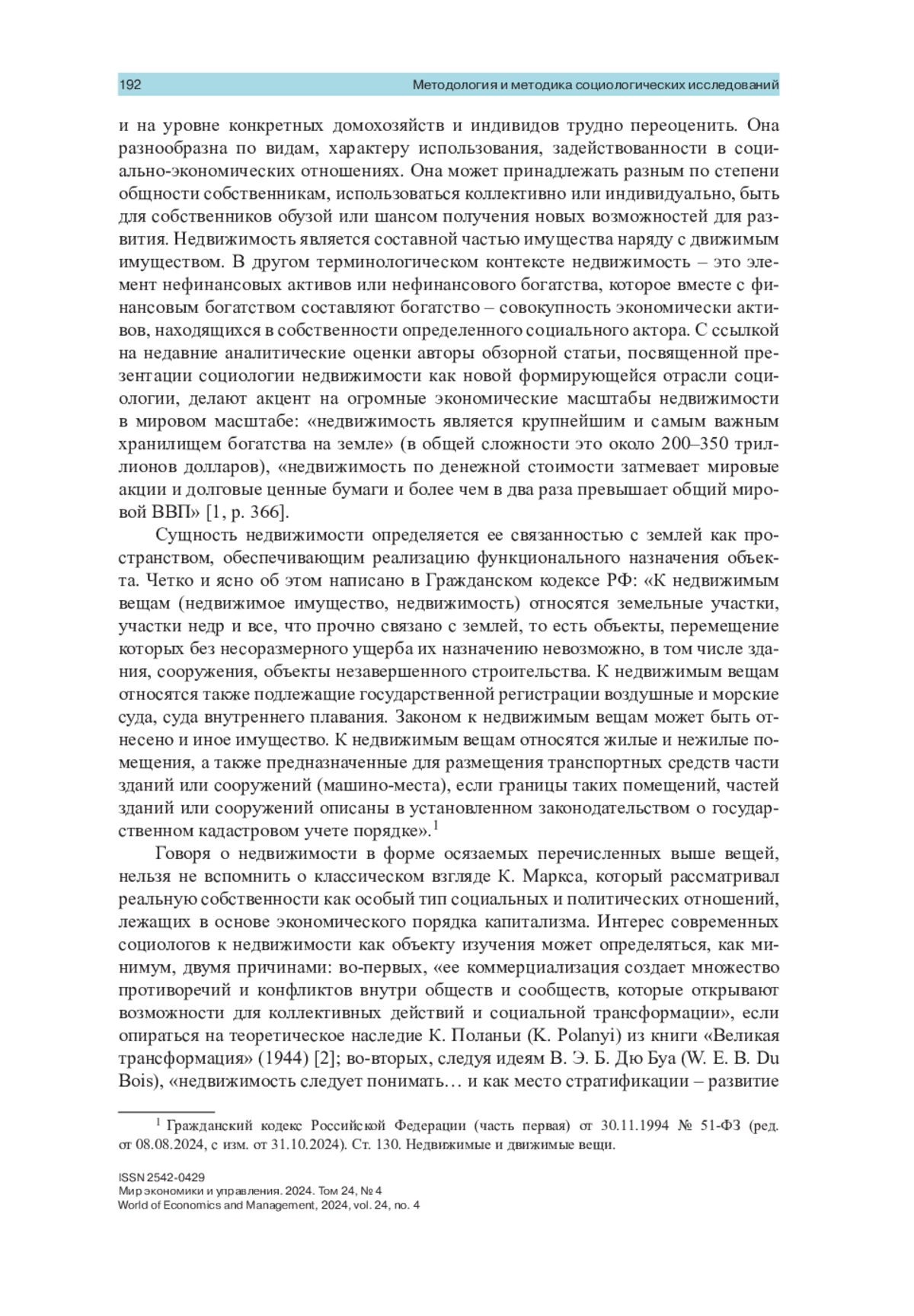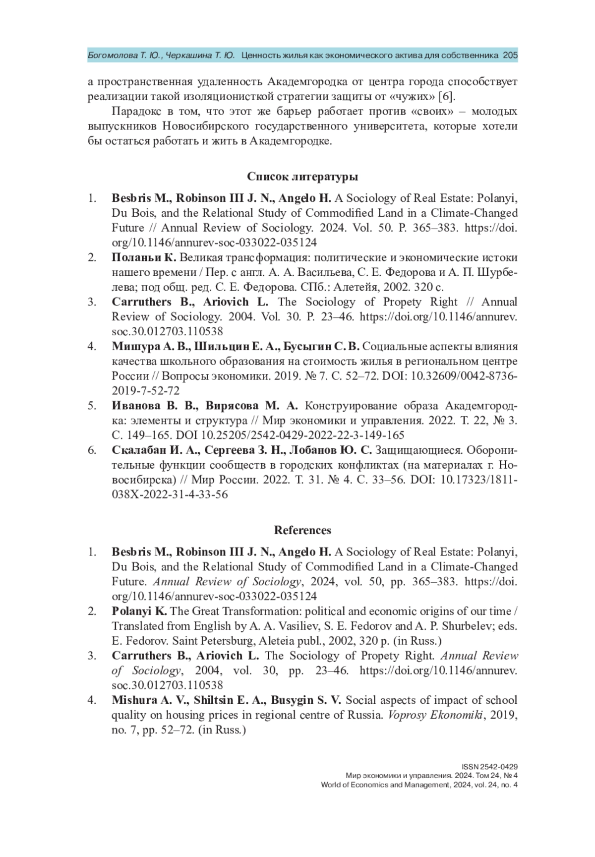 1. Besbris М., Robinson III J. N., Angelo H. A Sociology of Real Estate: Polanyi, Du Bois, and the Relational Study of Commodified Land in a Climate-Changed Future // Annual Review of Sociology. 2024. Vol. 50. P. 365-383. https://doi.org/10.1146/annurev-soc-033022-035124