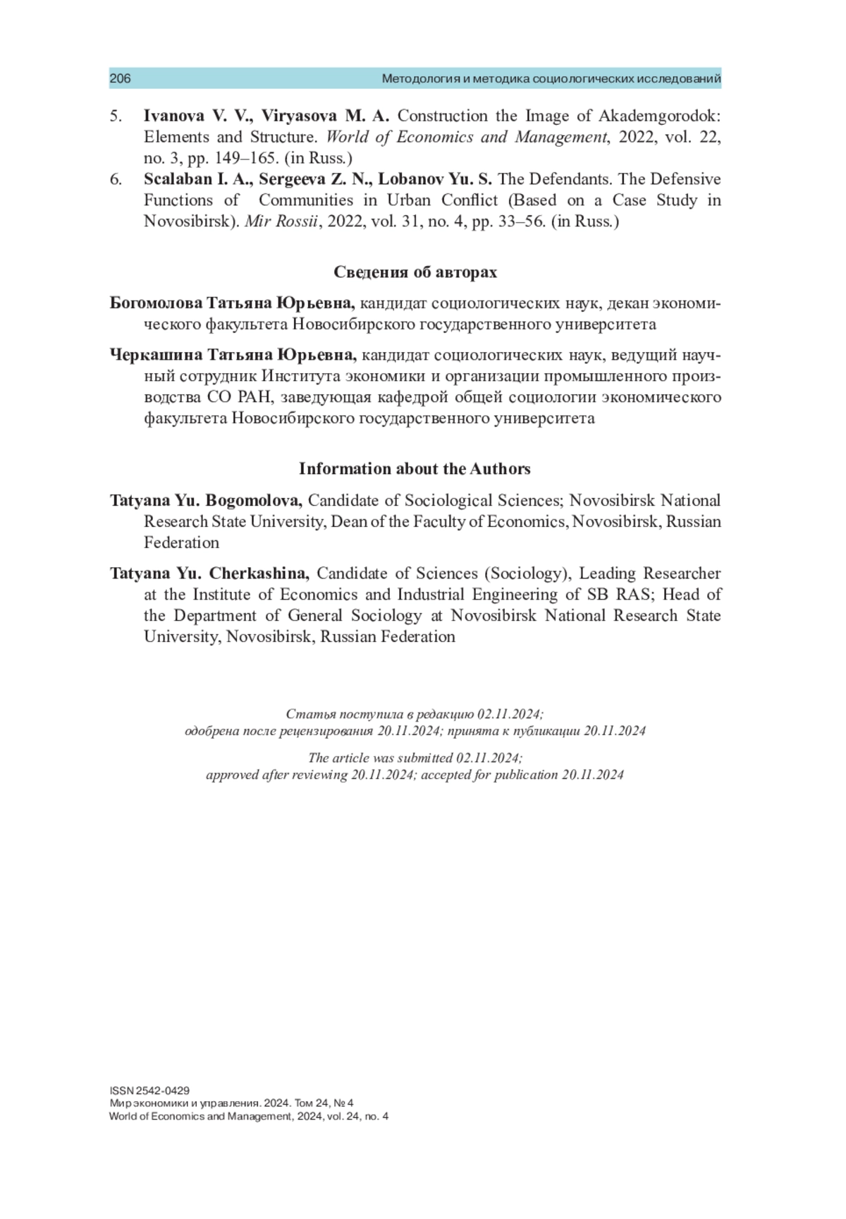 5. Иванова В. В., Вирясова М. А. Конструирование образа Академгородка: элементы и структура II Мир экономики и управления. 2022. Т. 22, № 3. С. 149-165. https://doi.org/10.25205/2542-0429-2022-22-3-149-165