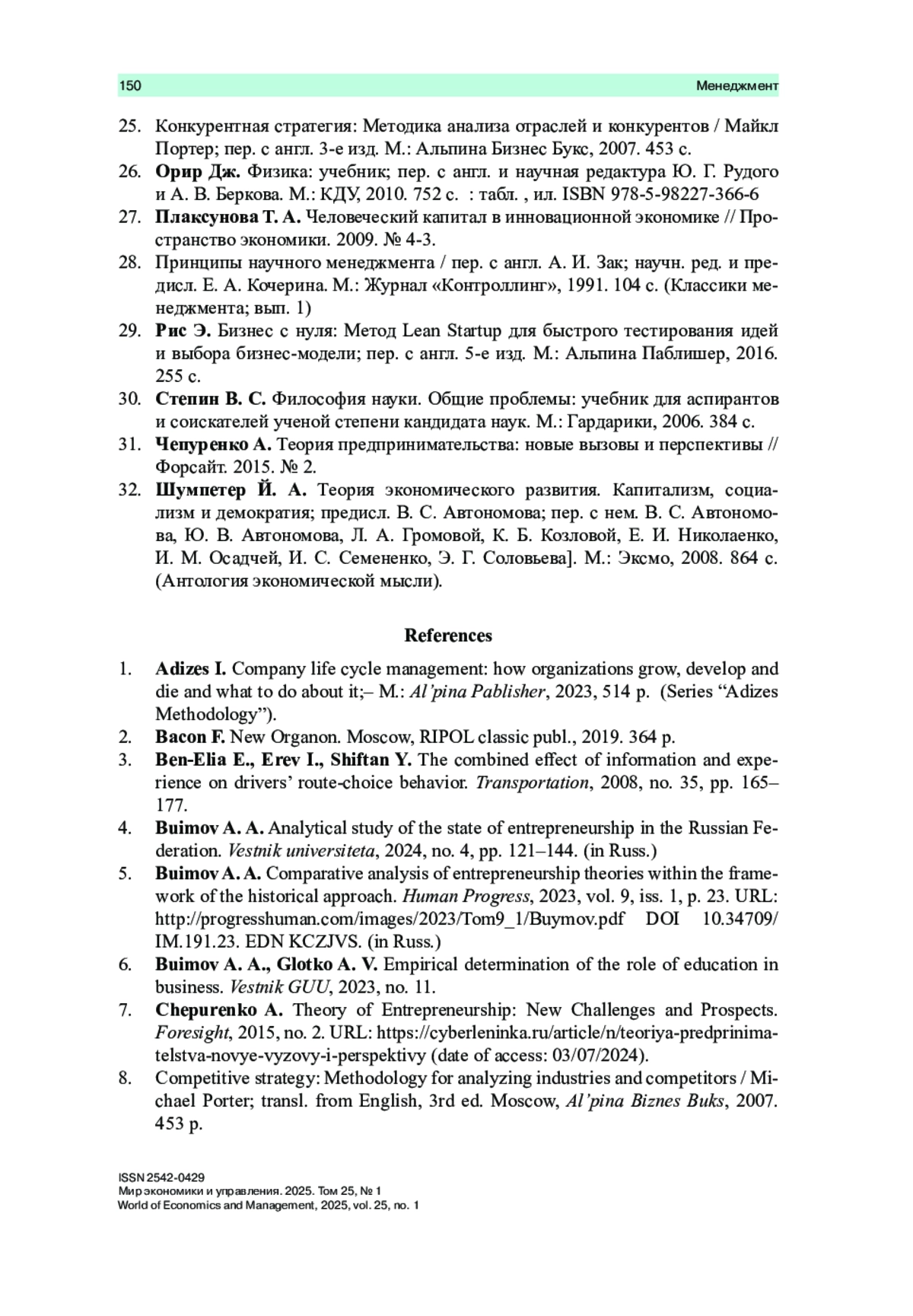 31. Чепуренко А. Теория предпринимательства: новые вызовы и перспективы // Форсайт. 2015. № 2.