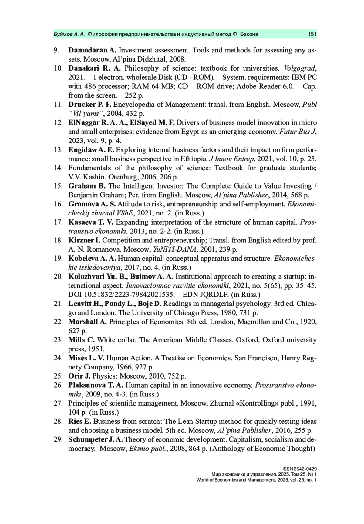 12. Буймов А. А. Сравнительный анализ теорий предпринимательства в рамках исторического подхода // Human Progress. 2023. Т. 9, вып. 1. С. 23.
