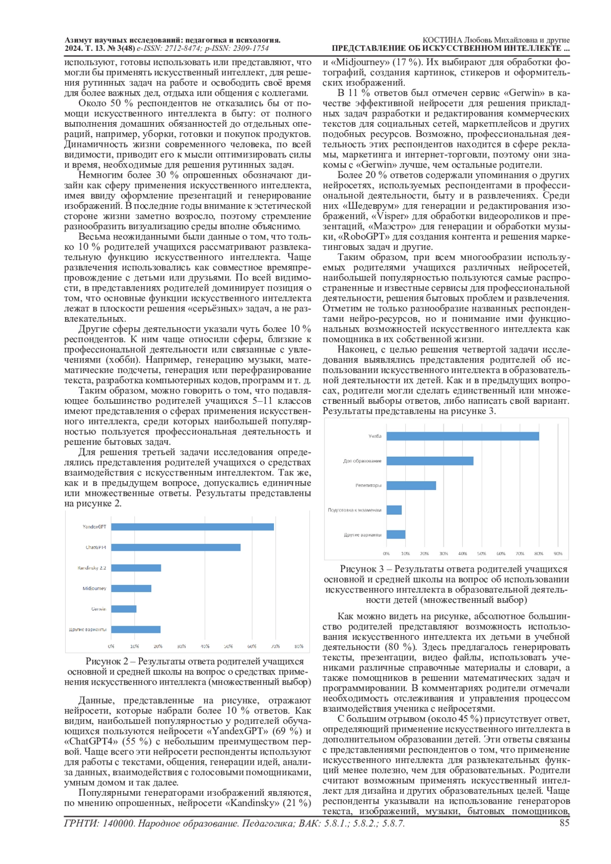 1. Геращенко И.Г., Геращенко Н.В. Искусственный интеллект в образовании как педагогическая инновация // Инновации в образовании. 2024. № 3. С. 65-71. EDN: DPRHMK