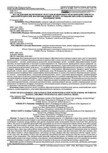 10. Соколова Н. А., Рослякова С. В., Лежнина О. Н. Организационно-педагогическое сопровождение семей, воспитывающих детей с ограниченными возможностями здоровья, в условиях инклюзивного образования // Балтийский гуманитарный журнал. 2023. № 3 (44). С. 61-65. EDN: MSFYHV