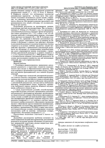 16. Курзаева Л.В., Барынина М.В., Якунина Е.К. К вопросу о трансформации системы профессиональной подготовки учителей в условиях развития сквозных технологий (на примере виртуальной и дополненной реальности) // Мир науки. Педагогика и психология, 2020 №3, https://mir-nauki.com/PDF/05PDMN320.pdf. EDN: FRVUPA