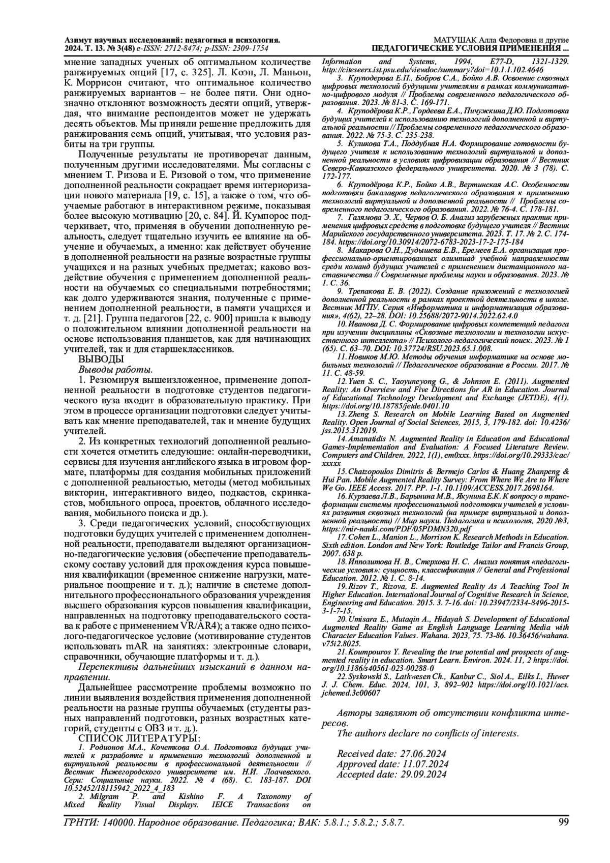 6. Круподёрова К.Р., Бойко А.В., Вертинская А.С. Особенности подготовки бакалавров педагогического образования к применению технологий виртуальной и дополненной реальности // Проблемы современного педагогического образования. 2022. № 76-4. С. 178-181. EDN: NSRSTG