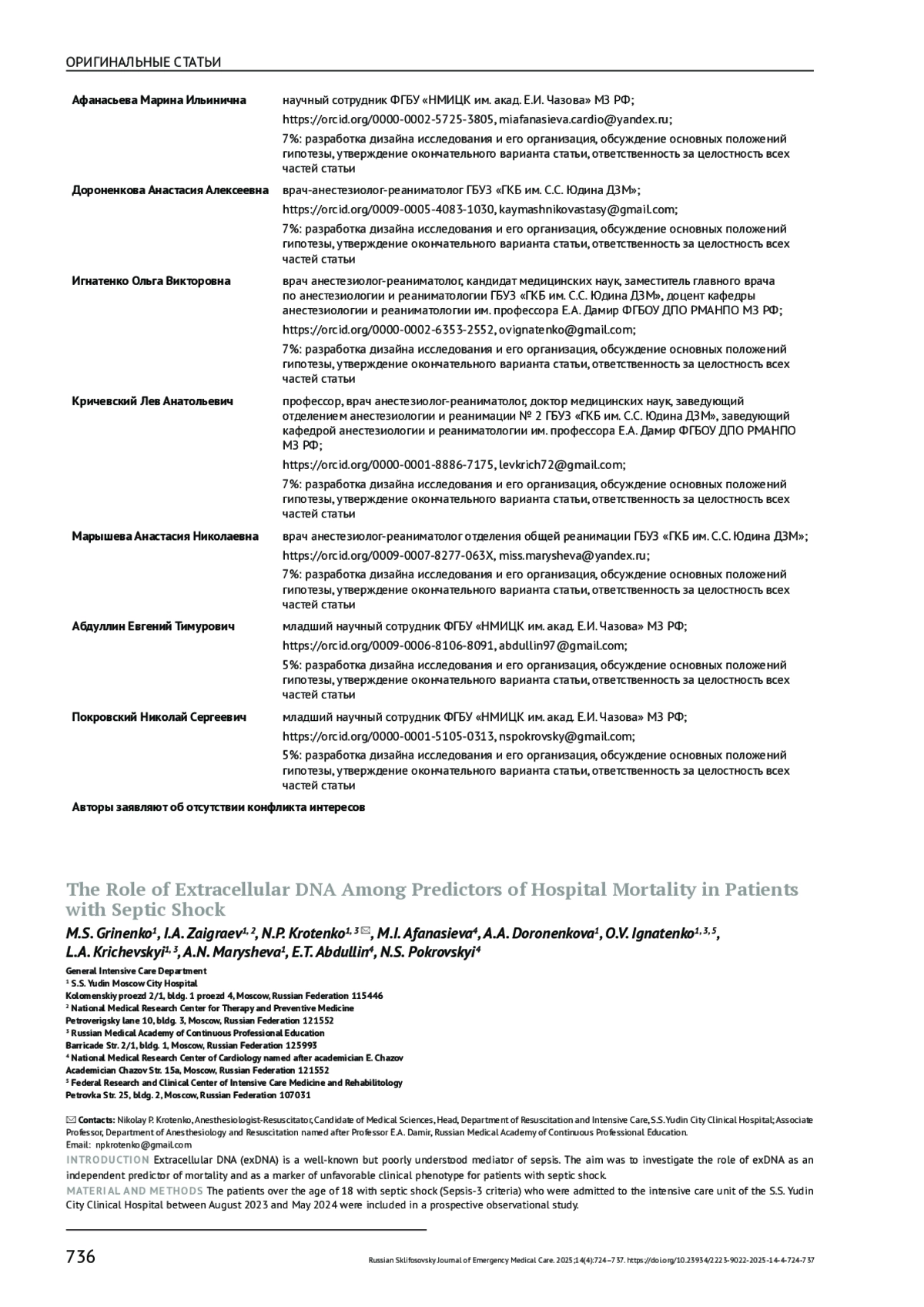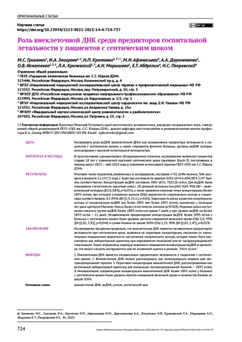 22. Ковзель В.А., Давыдова Л.А., Лапина Т.А., Семушкина А.А., Гутников А.И. Генетический, метаболомный, протеомный полиморфизм и клинические фенотипы сепсиса. Общая реаниматология. 2024;20(6):36-53.