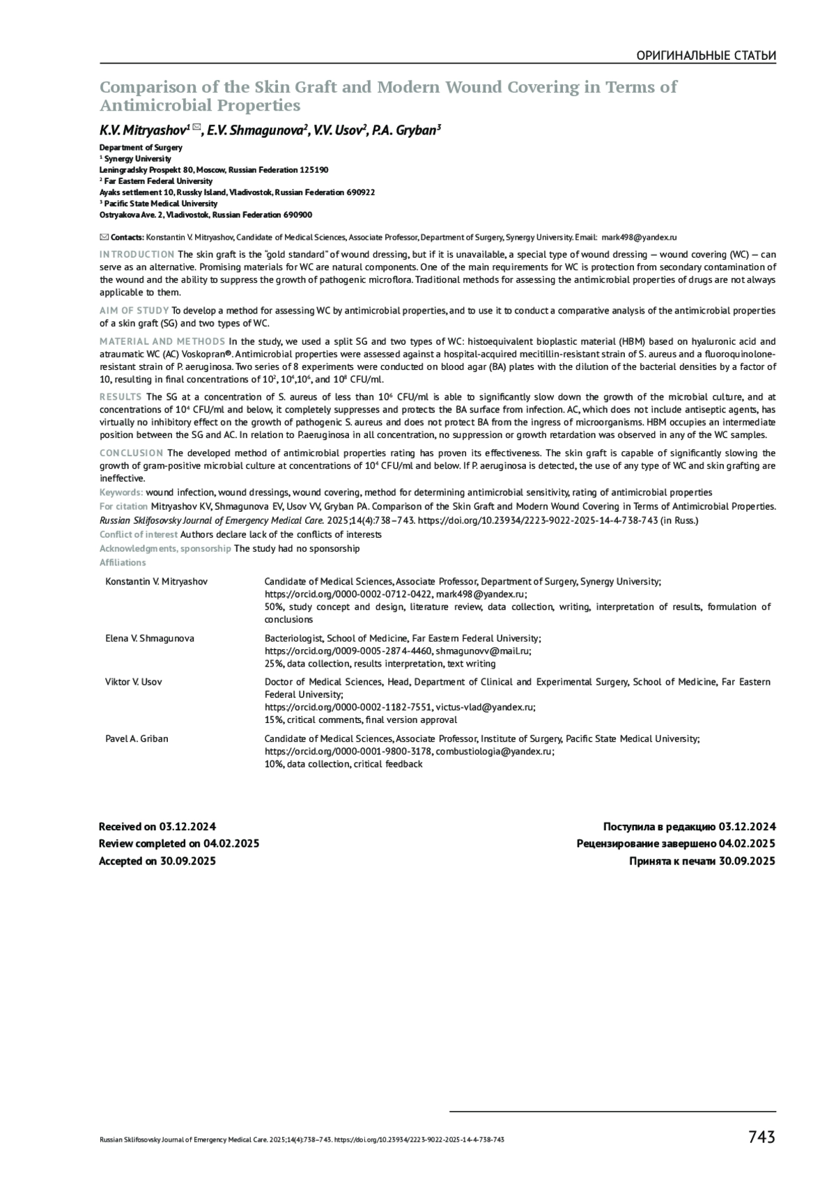 8. Морозов А.М., Сергеев А.Н., Сергеев Н.А., Дубатолов Г.А., Жуков С. В., Городничев К.И., и др. Использование современных раневых покрытий в местном лечении ран различной этиологии. Современные проблемы науки и образования. 2020;(2). URL: https://science-education.ru/ru/article/view?id=29705 (дата обращения: 17.11.2025). DOI: 10.17513/spno.29705