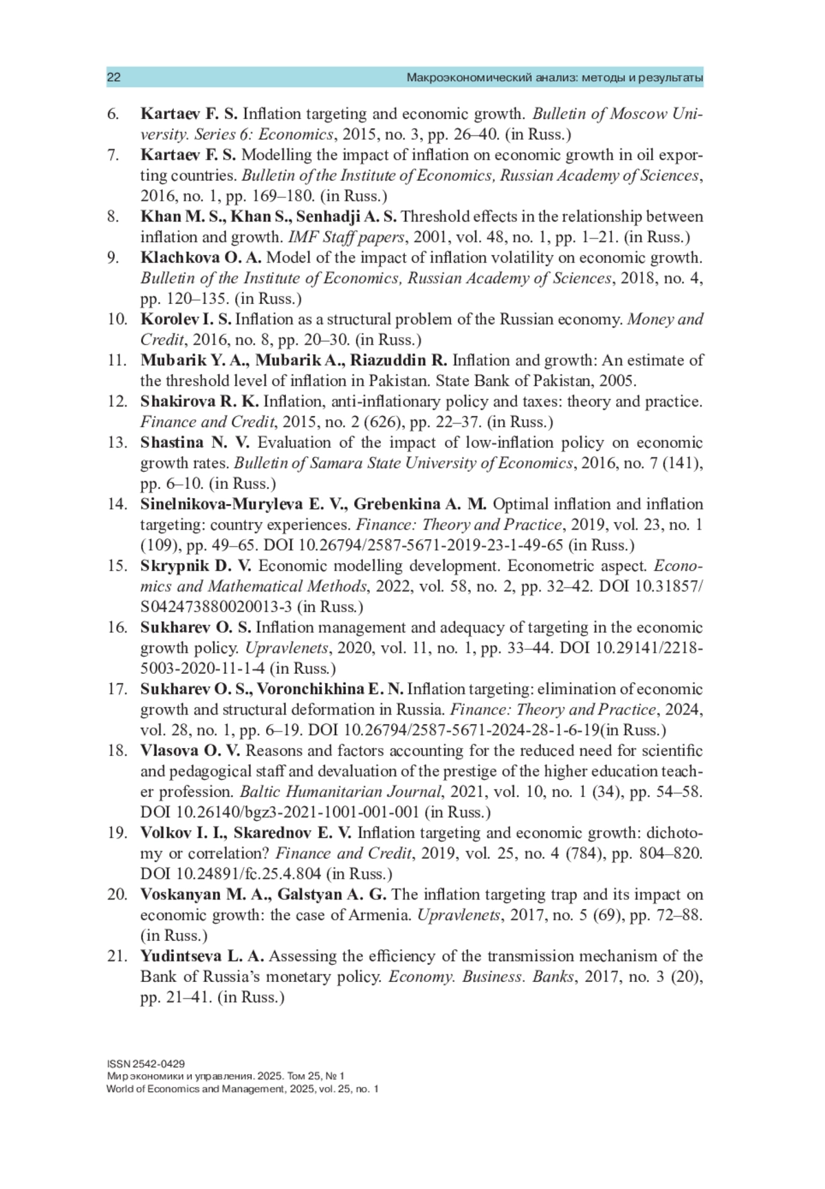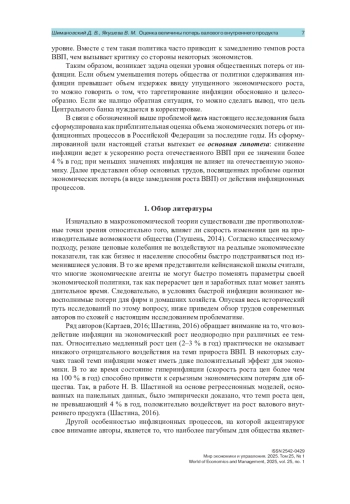 3. Волков И. И., Скареднов Е. В. Инфляционное таргетирование и экономический рост: дихотомия или корреляция? // Финансы и кредит. 2019. Т. 25, № 4 (784). С. 804-820. https://doi.org/10.24891/fc.25.4.804