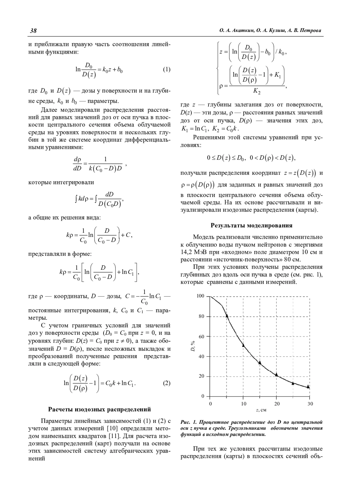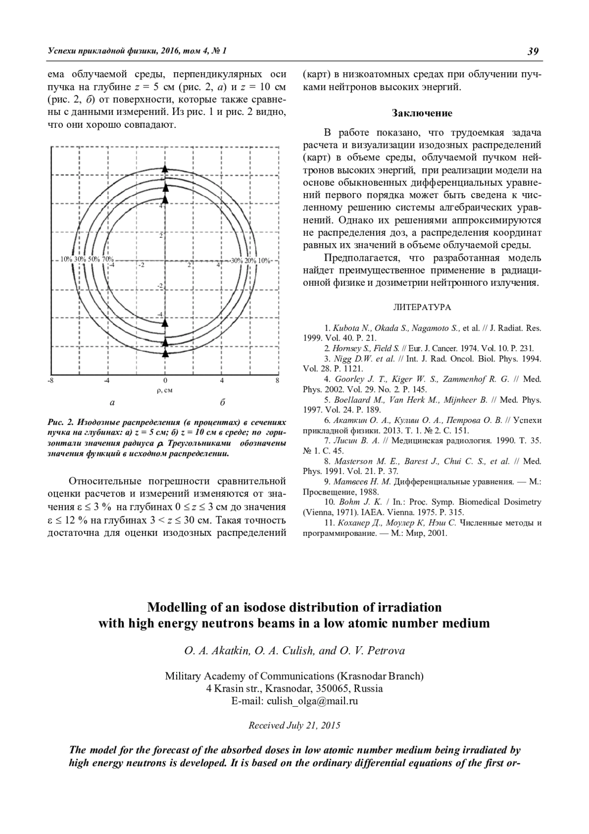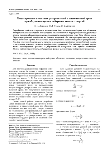 O. A. Akatkin, O. A. Culish, and O. V. Petrova Modelling of an isodose distribution of irradiation with high energy neutrons beams in a low atomic number medium 37