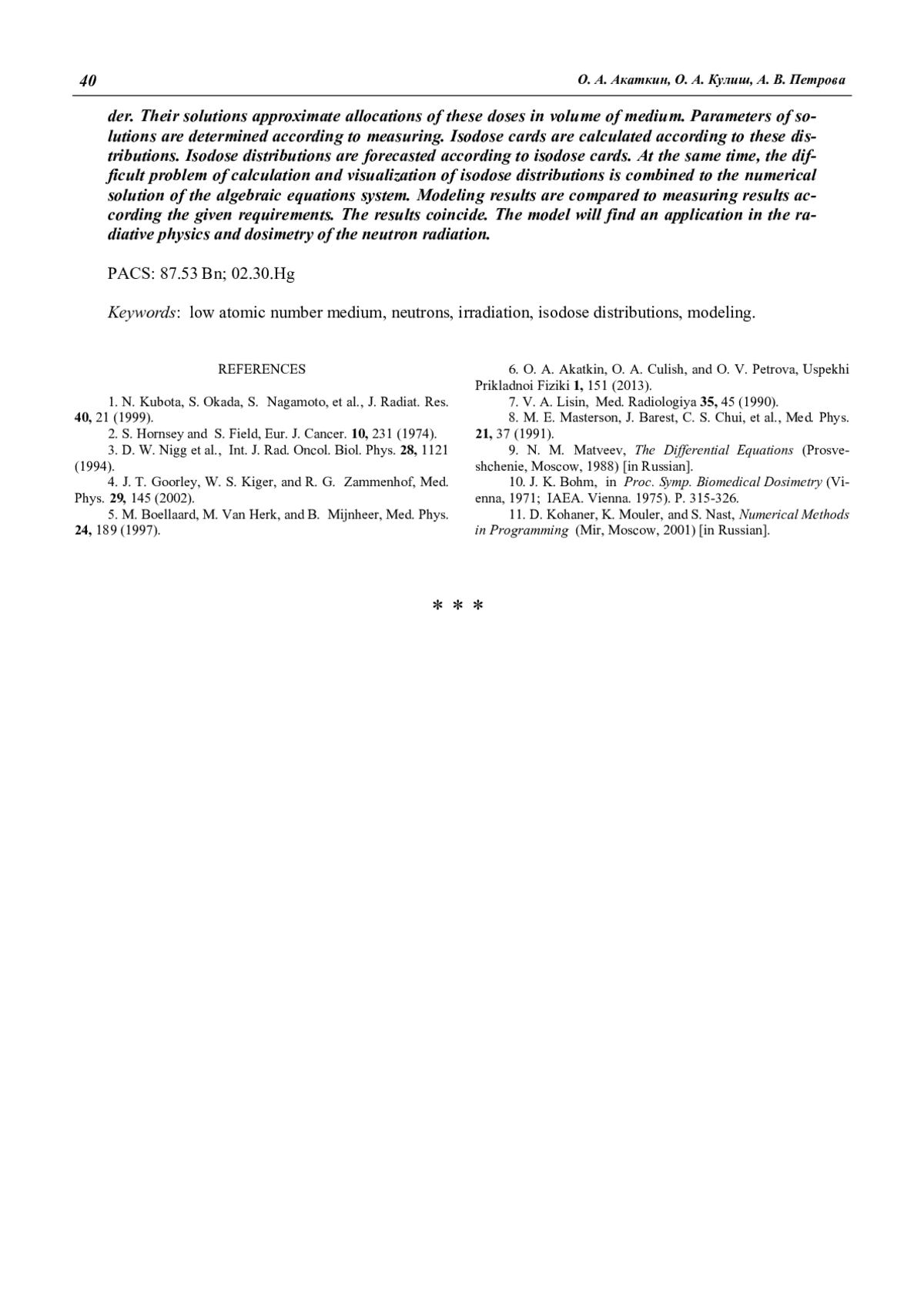 4. Goorley J. T., Kiger W. S., Zammenhof R. G. // Med. Phys. 2002. Vol. 29. No. 2. P. 145.