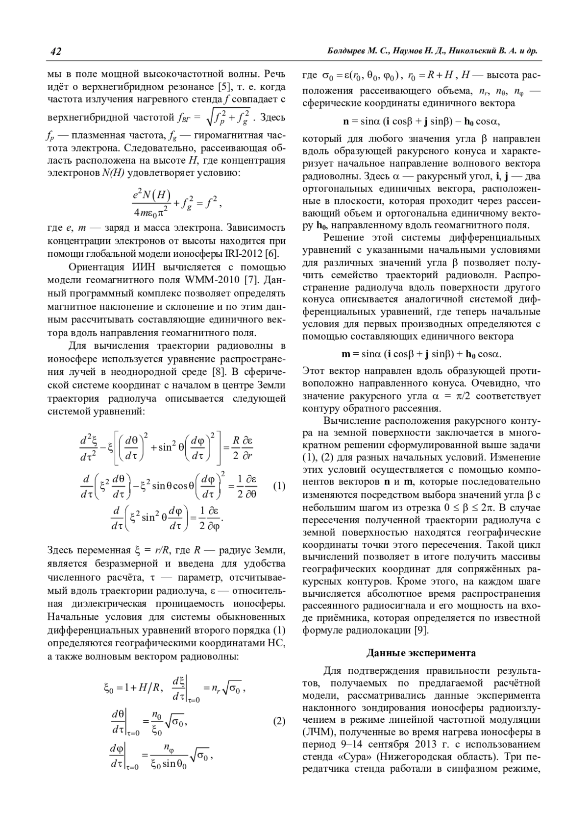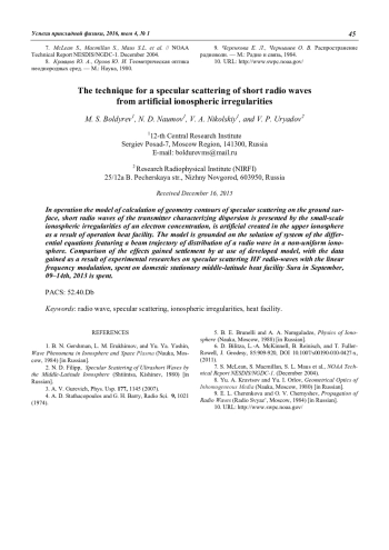 M. S. Boldyrev, N. D. Naumov, V. A. Nikolskiy, and V. P. Uryadov The technique for a specular scattering of short radio waves from artificial ionospheric irregularities 41