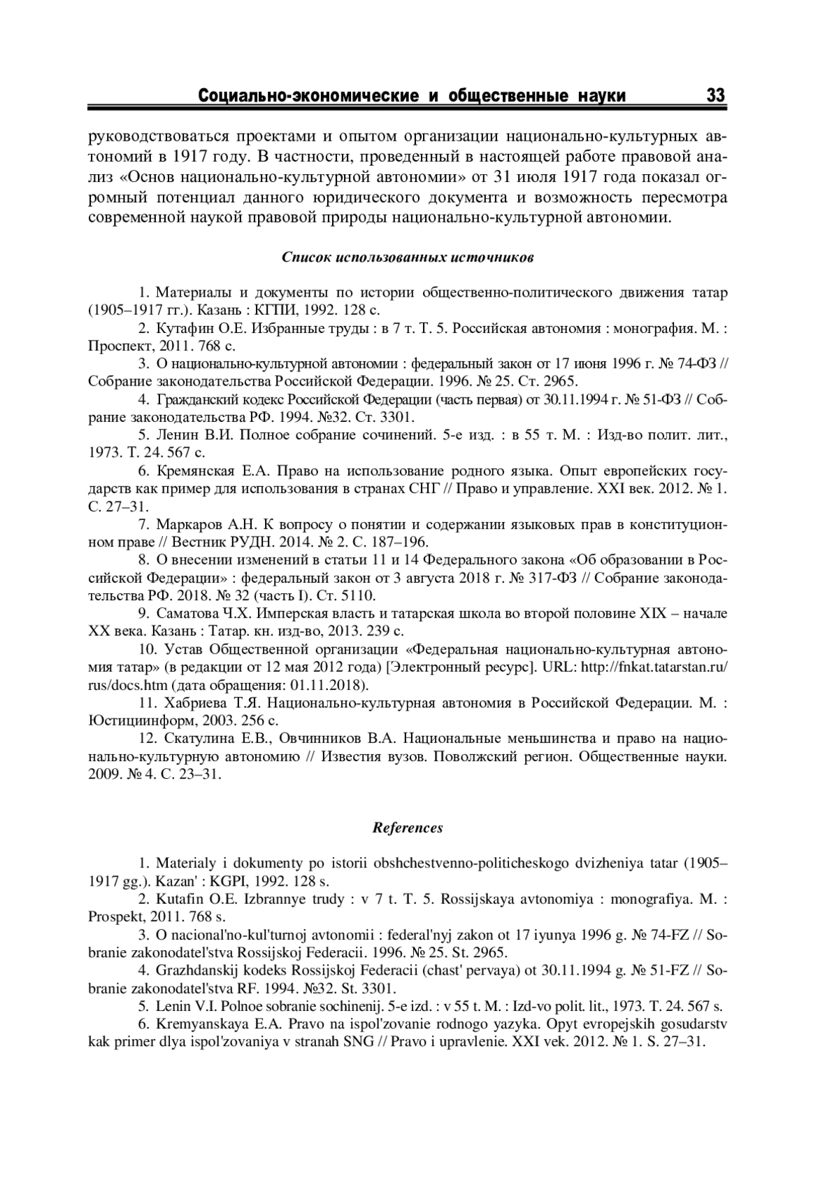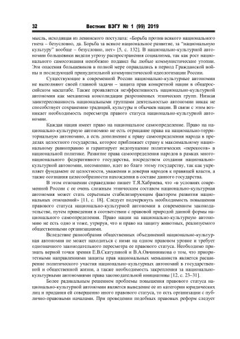 11. Хабриева Т.Я. Национально-культурная автономия в Российской Федерации. М.: Юстициинформ, 2003. 256 с. EDN: RASLLH