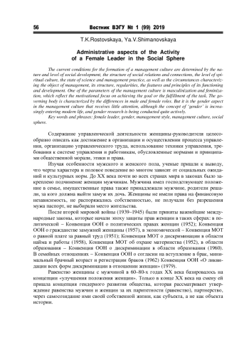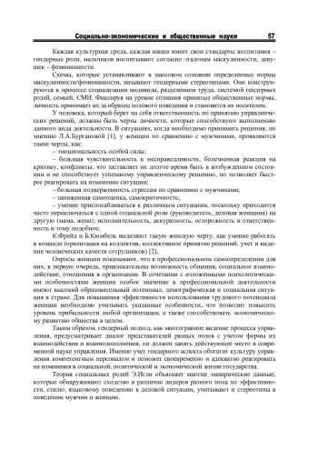 10. Михайлова М.В. Социальная роль женщины-руководителя в современной российской гендерной культуре: дис.. канд. соц. наук. М., 2009. 176 с. EDN: QEMBNX