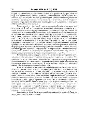 Разнообразные исследовательские приемы, доказавшие свои эвристические возможности, обилие информации, заслуживающей внимания с социологической точки зрения, усложняют задачу оптимального выбора единицы анализа при изучении социально-стратификационной структуры современного общества. Системные характеристики данной конструкции детерминируют поиск элементов-систем меньшего порядка, обеспечивающих ее функционирование и воспроизводство. В данном контексте вполне обоснованно представление семейных систем [1, с. 73], задающих стартовые позиции индивида, укрепляя (или разрушая) имеющийся у него личностный потенциал.