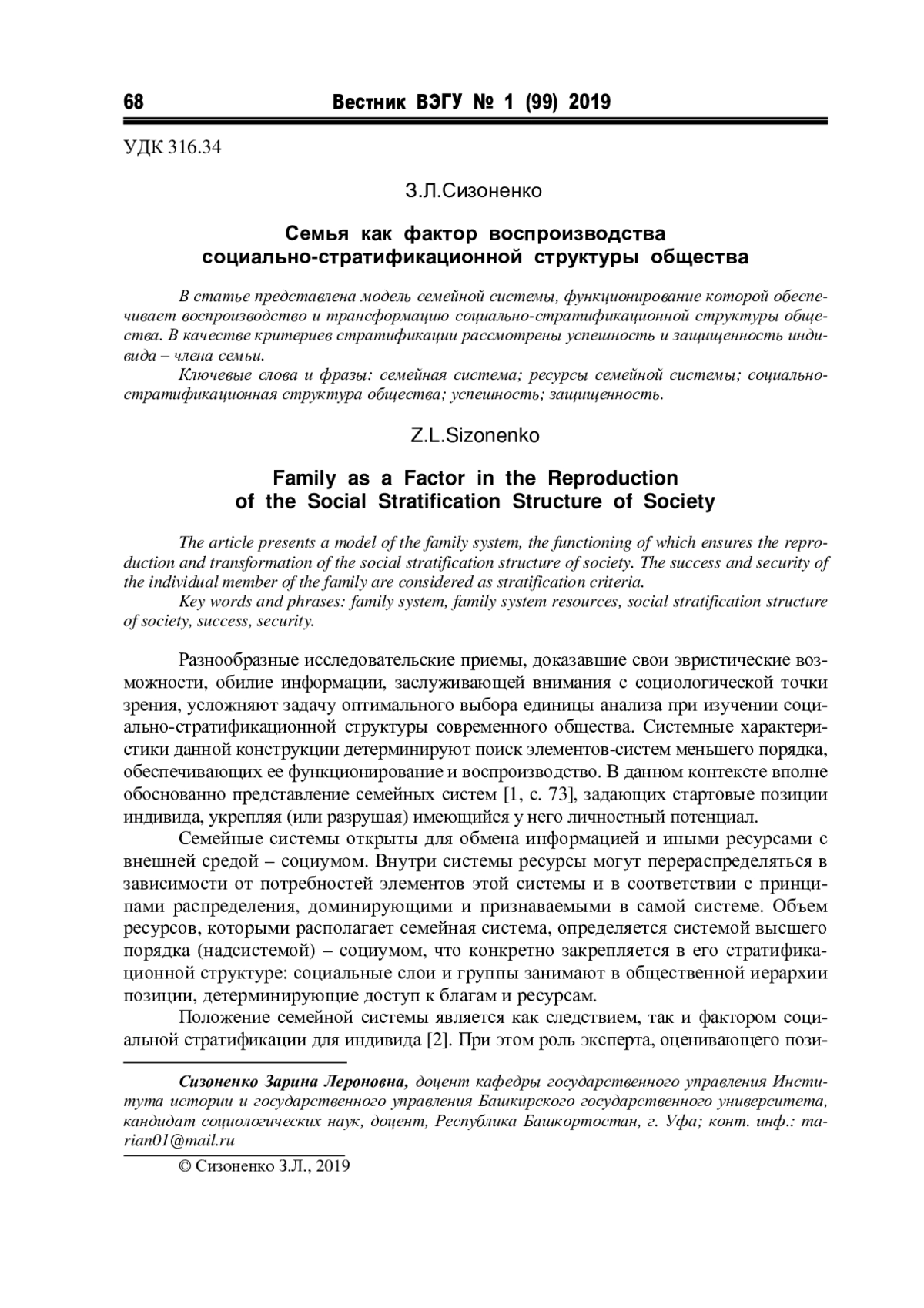 2. Сизоненко З.Л. Роль семьи в социально-стратификационной структуре общества: актуальные вопросы исследования // Человеческий капитал. 2012. № 8(14). С. 11-13. EDN: HHIIUF