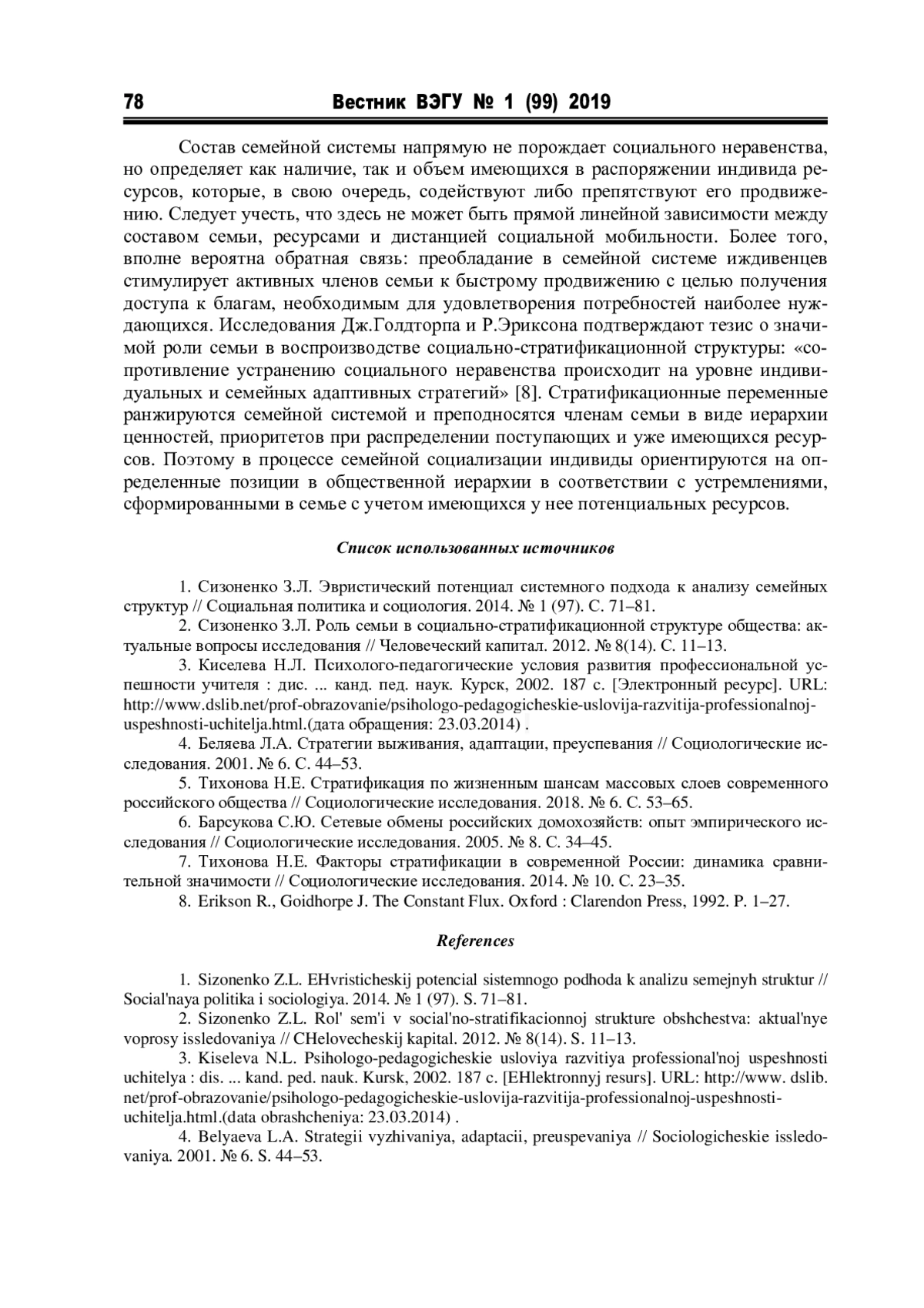 1. Сизоненко З.Л. Эвристический потенциал системного подхода к анализу семейных структур // Социальная политика и социология. 2014. № 1 (97). С. 71-81. EDN: SJKGKL