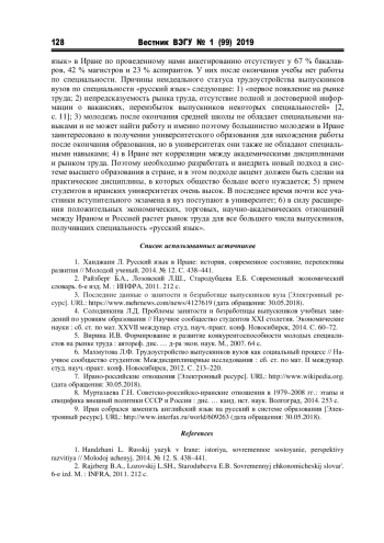 4. Солодянкина Л.Д. Проблемы занятости и безработицы выпускников учебных заведений по уровням образования // Научное сообщество студентов XXI столетия. Экономические науки: сб. ст. по мат. XXVII междунар. студ. науч.-практ. конф. Новосибирск, 2014. С. 60-72.