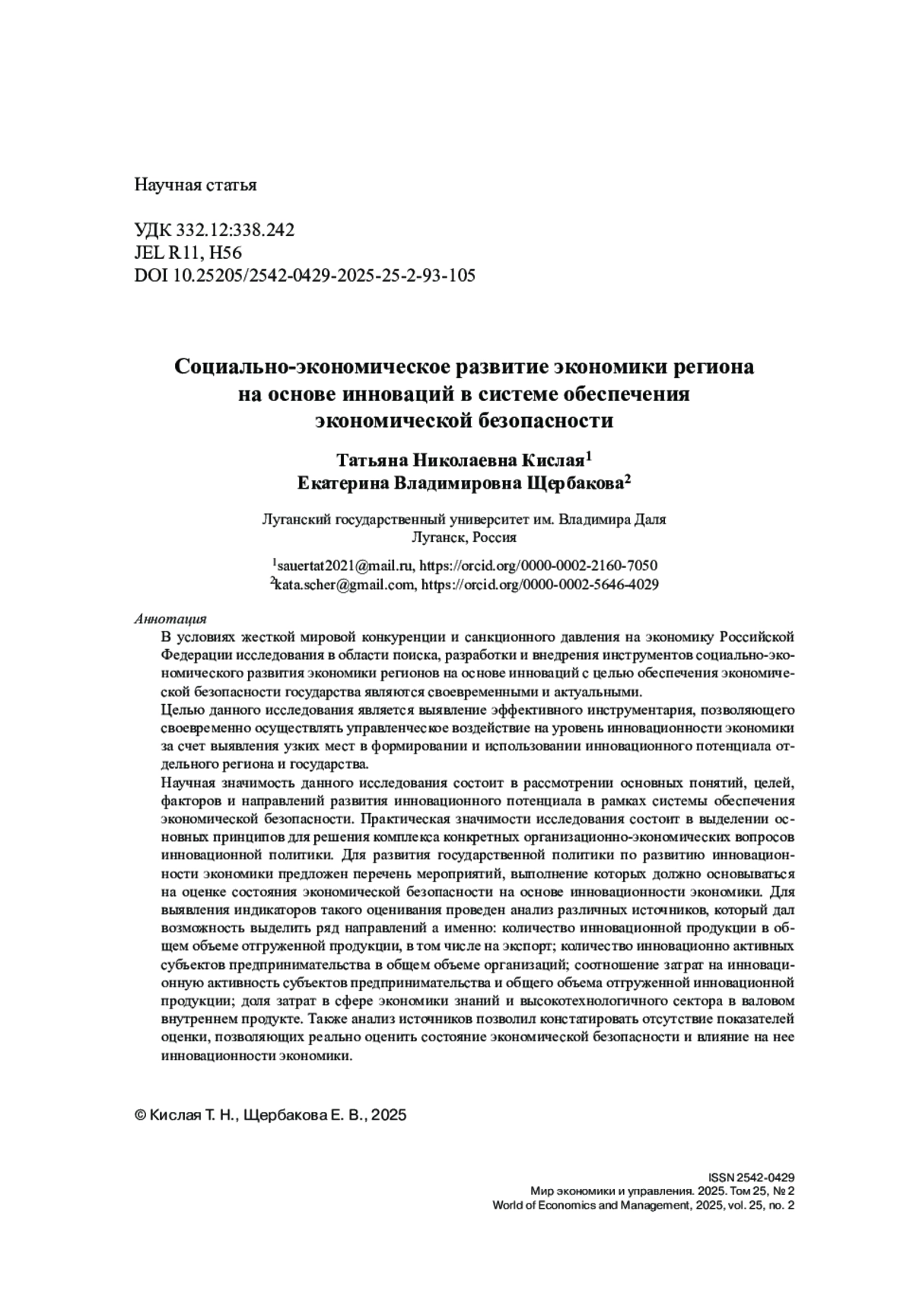 - 10.25205/2542-0429-2025-25-2-93-105