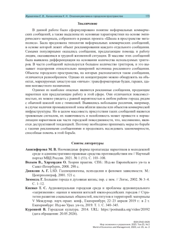 1. Анисифорова М. В. Неочевидные формы пропаганды наркотиков в молодежной среде и административно-правовые средства противодействия им // Научный портал МВД России. 2021. № 1 (53). С. 103-108.