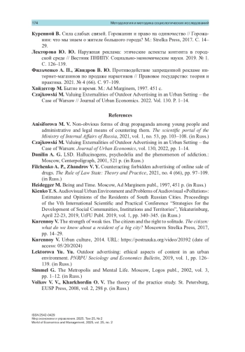 8. Лекторова Ю. Ю. Наружная реклама: этические аспекты контента в городской среде // Вестник ПНИПУ. Социально-экономические науки. 2019. № 1. С. 126-139.