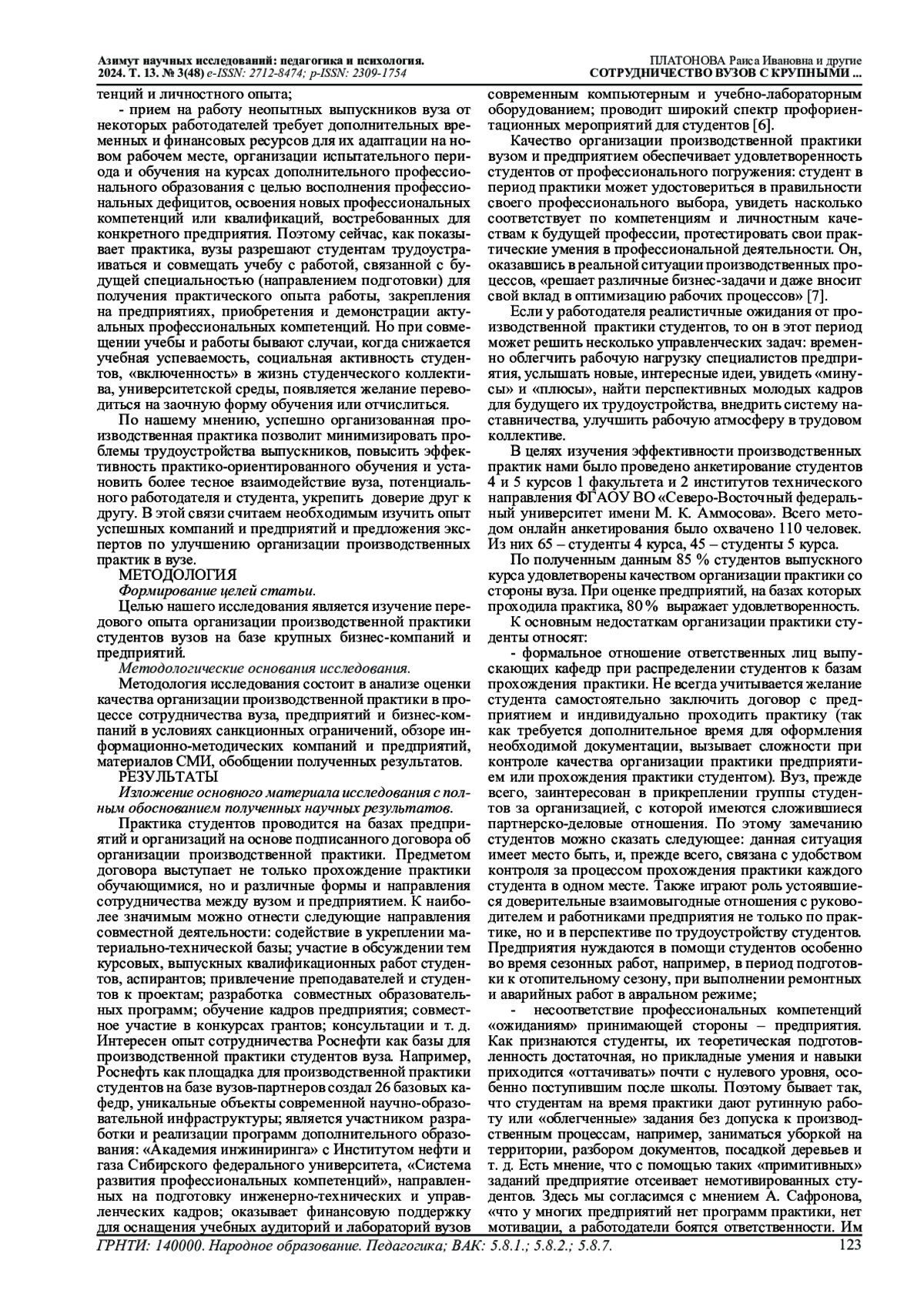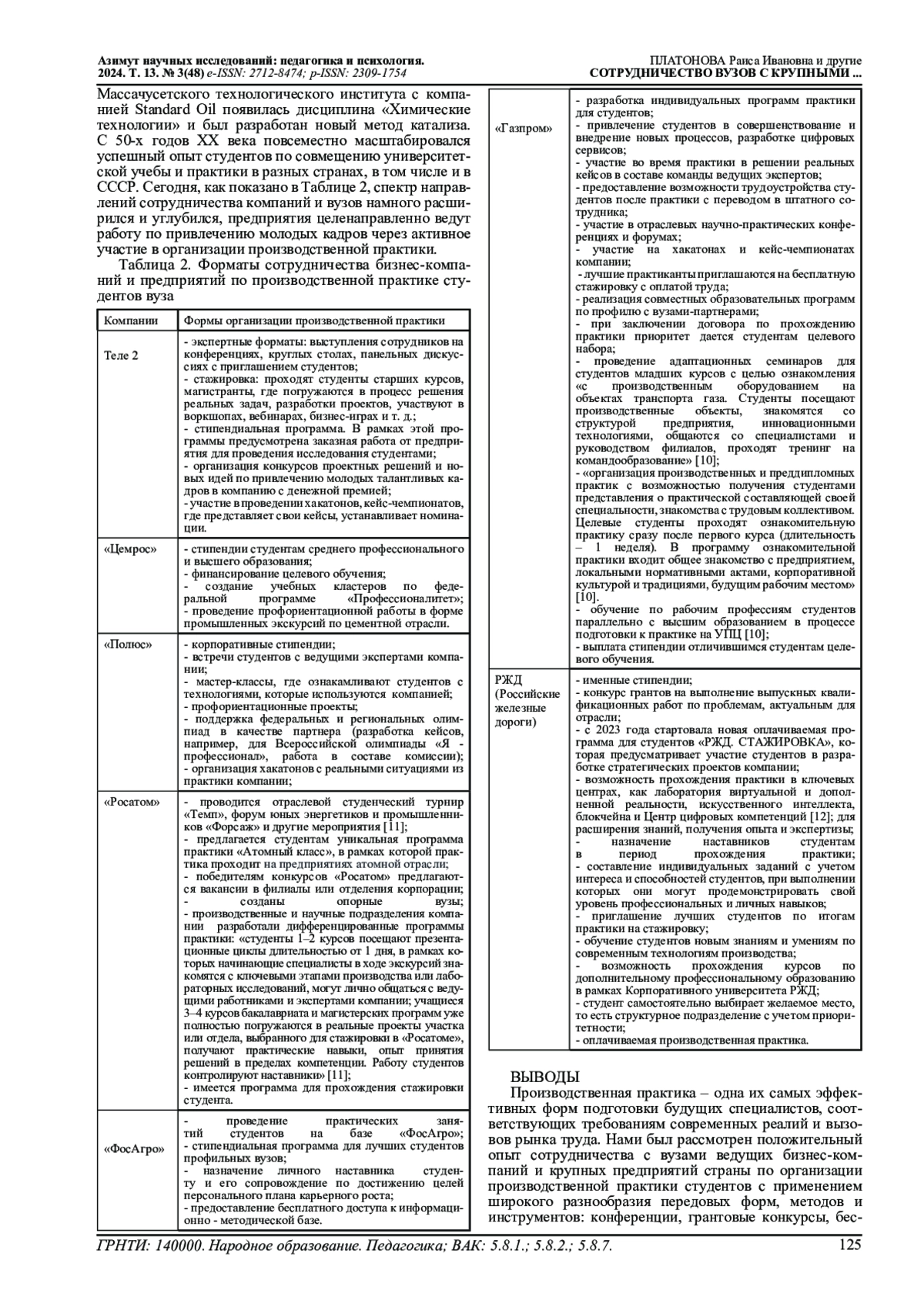 Авторами в статье раскрыта роль сотрудничества вузов с крупными бизнес-компаниями и предприятиями в процессе реализации образовательных программ по организации производственной практики студентов. На основе проведенного опроса среди студентов старших курсов по оценке качества проведения производственной практики дано обоснование актуальности практико-ориентированного направления подготовки кадров в системе высшего образования в тесном сотрудничестве с предприятиями как потенциальных работодателей, площадки профессионального погружения студента в условиях реальных производственных ситуаций и участвовать в решении различных производственных задач. Уточнены интересы вуза, предприятий и студентов в их трехстороннем сотрудничестве с учетом условий современных реалий на рынке труда и высшего образования. Проанализирован инновационный подход крупных бизнес-компаний и предприятий по привлечению студентов к производственной практике с использованием современных инструментов эффективного взаимодействия.