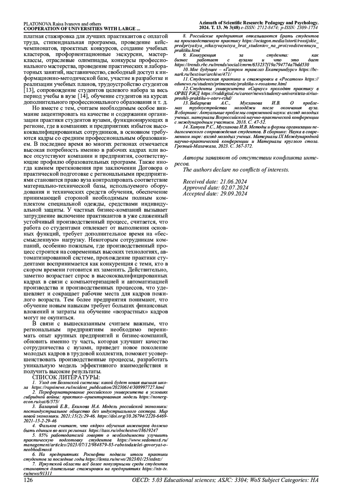 8. Российские предприятия отказываются брать студентов на производственную практику https://octagon.media/istorii/rossijskie_predpriyatiya_otkazyvayutsya_brat_studentov_na_proizvodstvennuyu_praktiku.html (Дата обращения 12 июня 2024 г.).