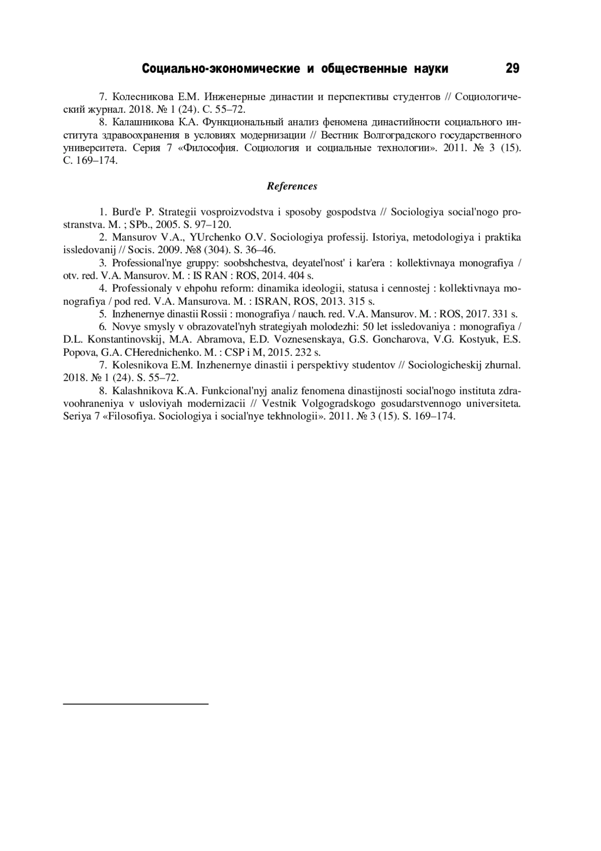 7. Колесникова Е.М. Инженерные династии и перспективы студентов//Социологический журнал. 2018. № 1 (24). С. 55-72. EDN: YTPUDL