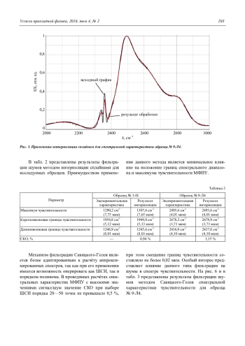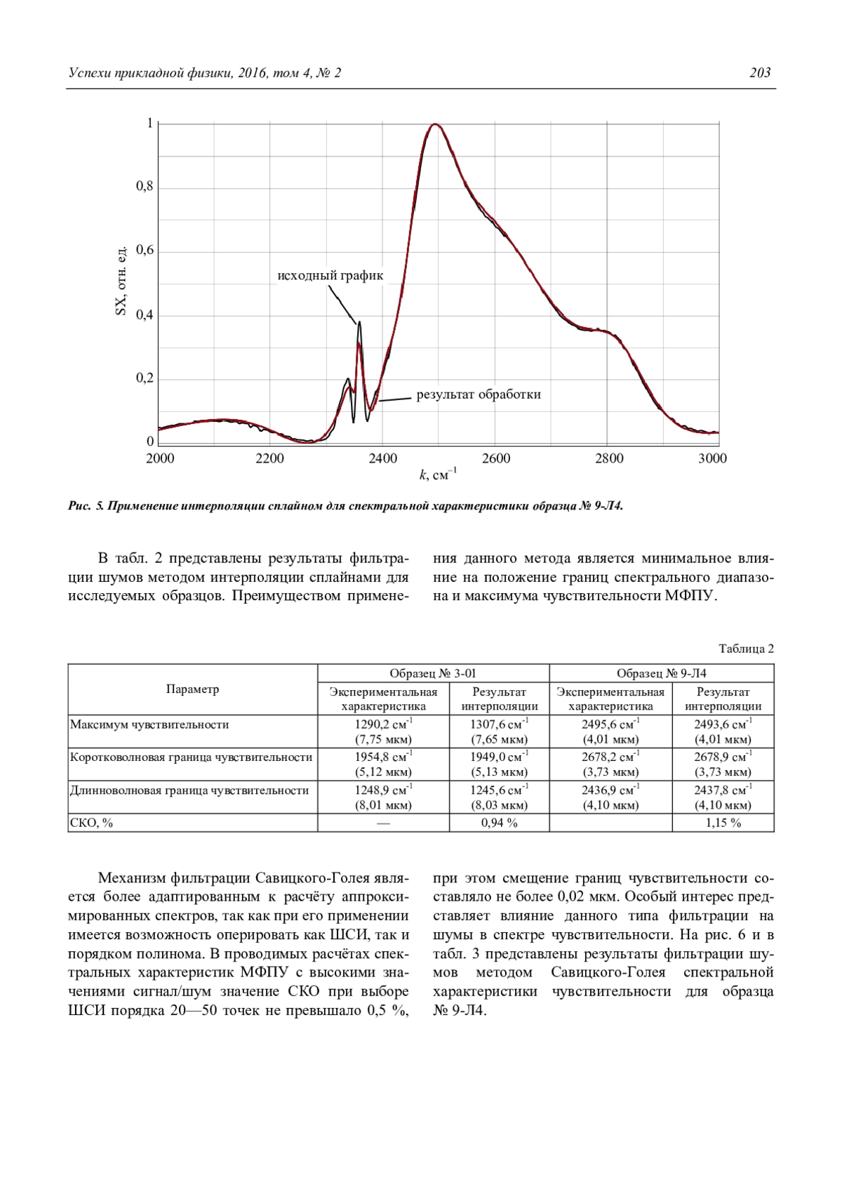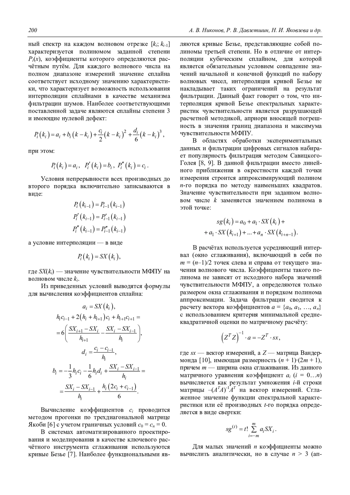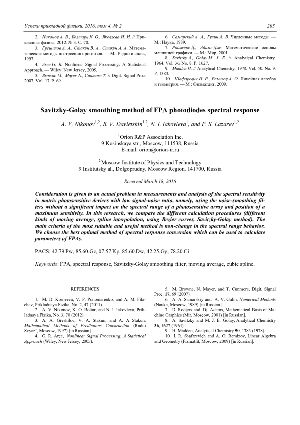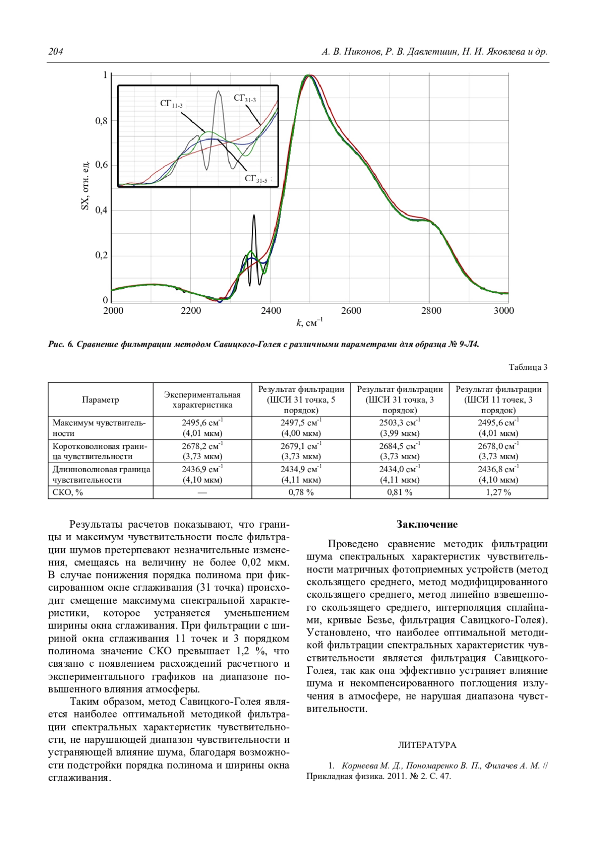 Никонов А. В., Давлетшин Р. В., Яковлева Н. И., Лазарев П. С. Фильтрация методом Савицкого-Голея спектральных характеристик чувствительности матричных фотоприемных устройств 198