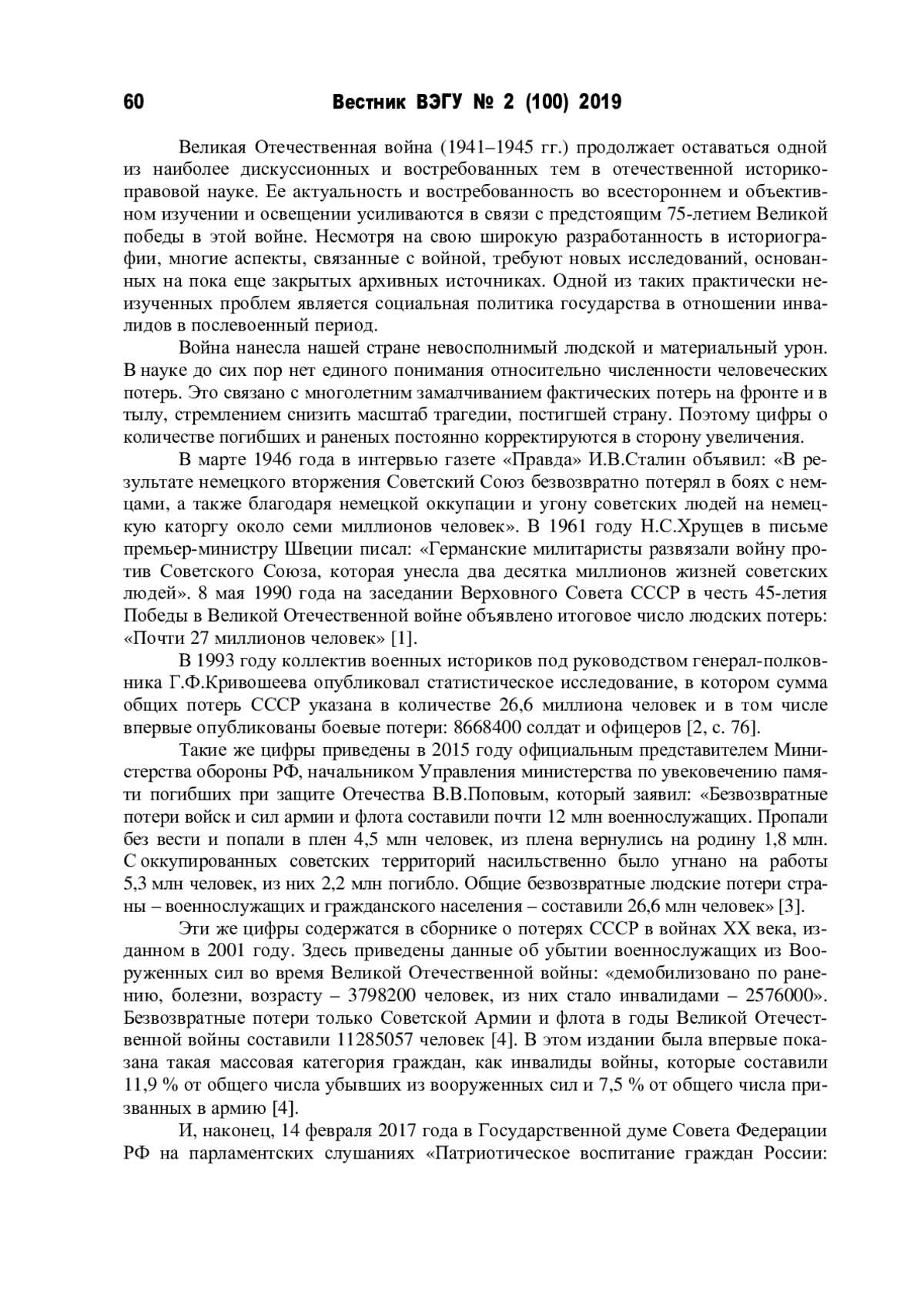 3. Минобороны уточнило потери СССР в Великой отечественной войне. [Электронный ресурс]. URL: https://www.interfax.ru/russia/479070 (дата обращения: 11.02.2019).
