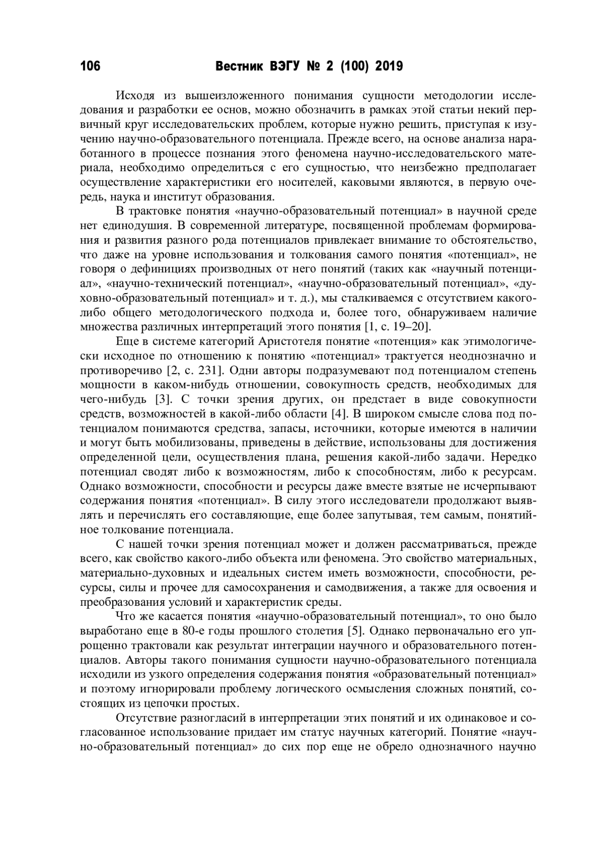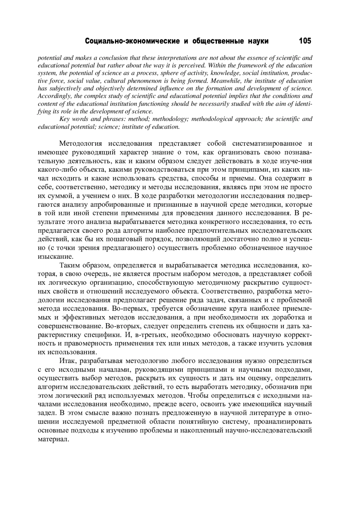 Определяя методологические основы исследования научно-образовательного потенциала, в первую очередь, необходимо раскрыть его сущность. В статье содержатся краткий обзор и анализ имеющихся в научной литературе определений понятия «научно-образовательный потенциал» и делается вывод о том, в предложенных определениях речь идет не о сущности научно-образовательного потенциала, а о том, в виде чего он воспринимается. В рамках системы образования происходит формирование потенциала развития науки как процесса, сферы деятельности, знаний, социального института, производительной силы, общественной ценности, феномена культуры. При этом институт образования оказывает как субъективно, так и объективно обусловленное влияние на становление науки и ее развитие. Соответственно, комплексное исследование научно-образовательного потенциала предполагает обязательное изучение условий и содержания функционирования института образования с целью определения его влияния на развитие науки.