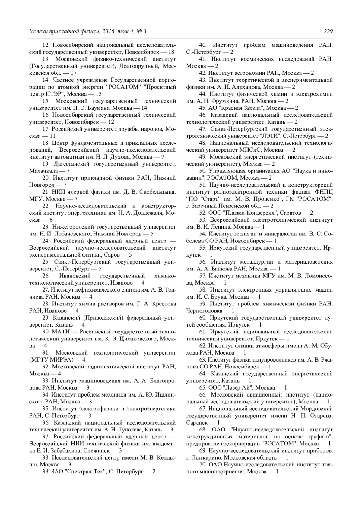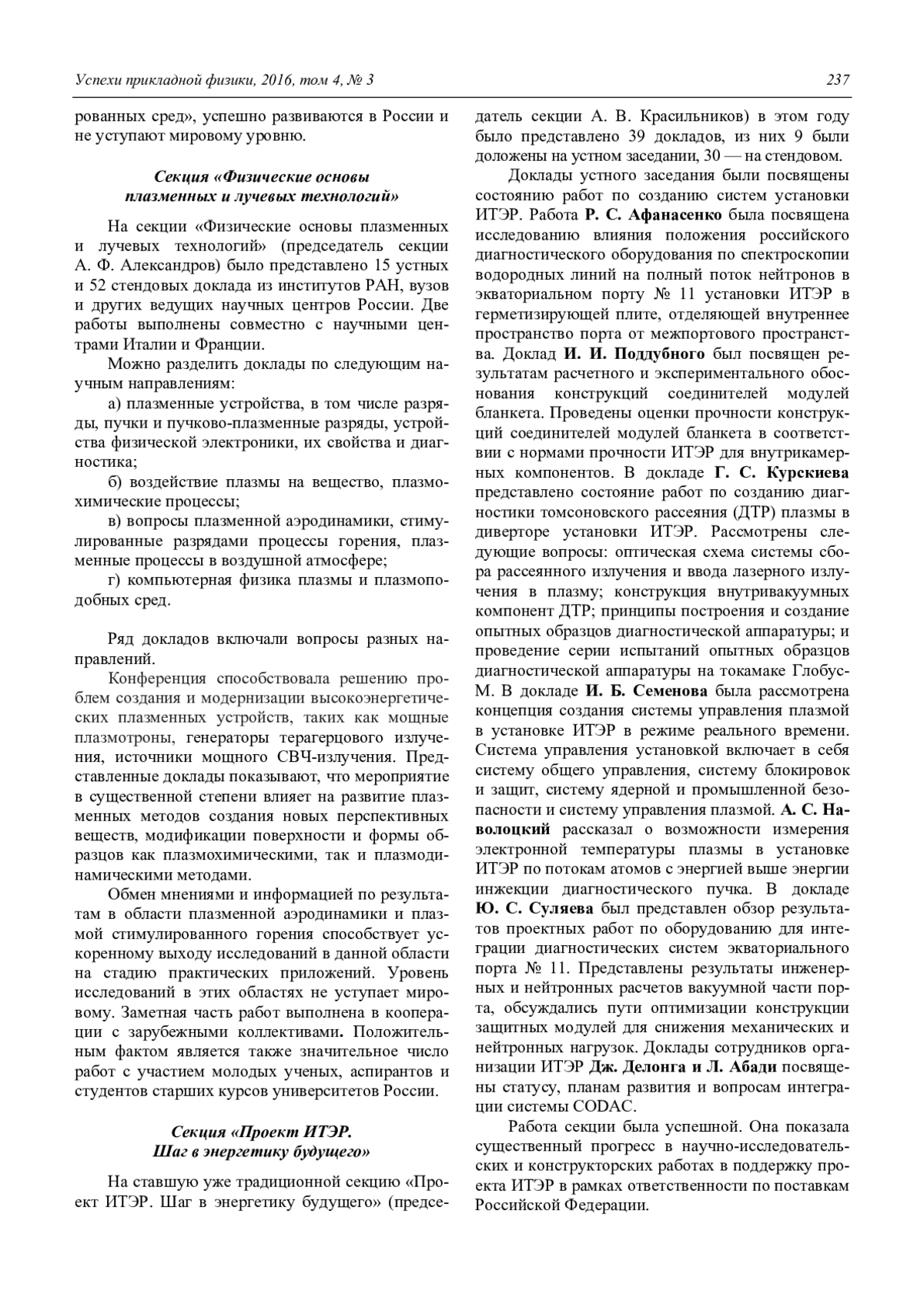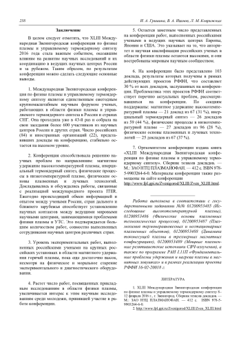 Гришина И. А., Иванов В. А., Коврижных Л. М. Новые тенденции в исследованиях по физике плазмы и управляемому термоядерному синтезу в России (обзор по материалам XLIII Международной конференции по физике плазмы и УТС) 228