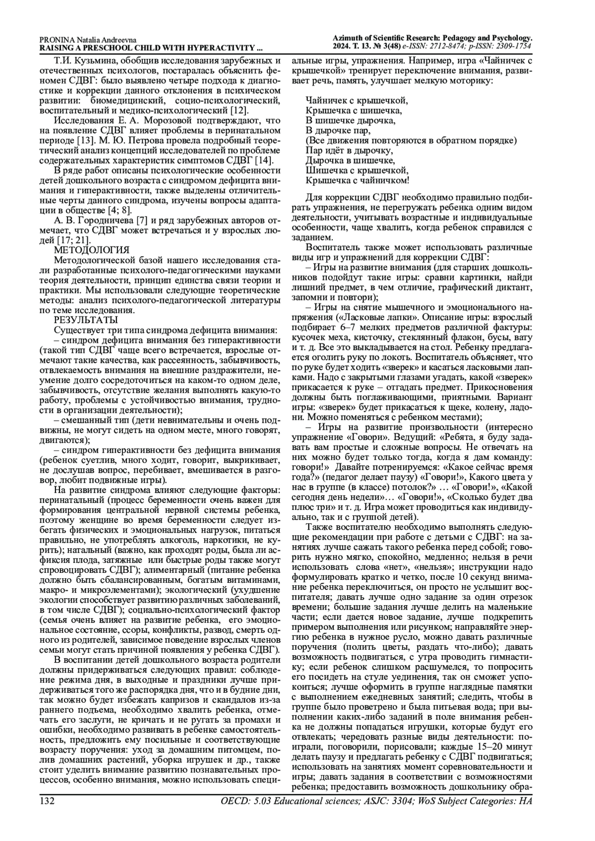 8. Зубарева М.Н., Добря М.Я. Особенности проявления синдрома дефицита внимания и гиперактивности у дошкольников//Вестник магистратуры. 2022. №2-29(125). С.100-109.