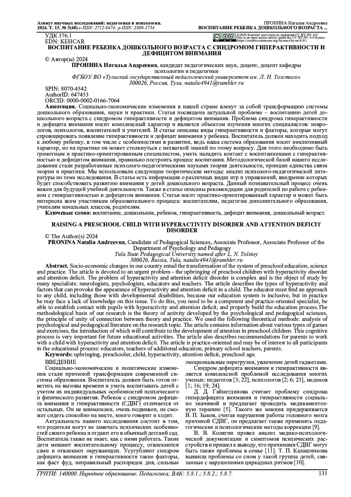 11. Колягин В.В., Кульчинская С.Ю., Иванова В.П. Синдром дефицита внимания с гиперактивностью - гиперкинетическое расстройство//Научное обозрение. Медицинские науки. 2021. № 6. С. 66-71. EDN: DGQFNH